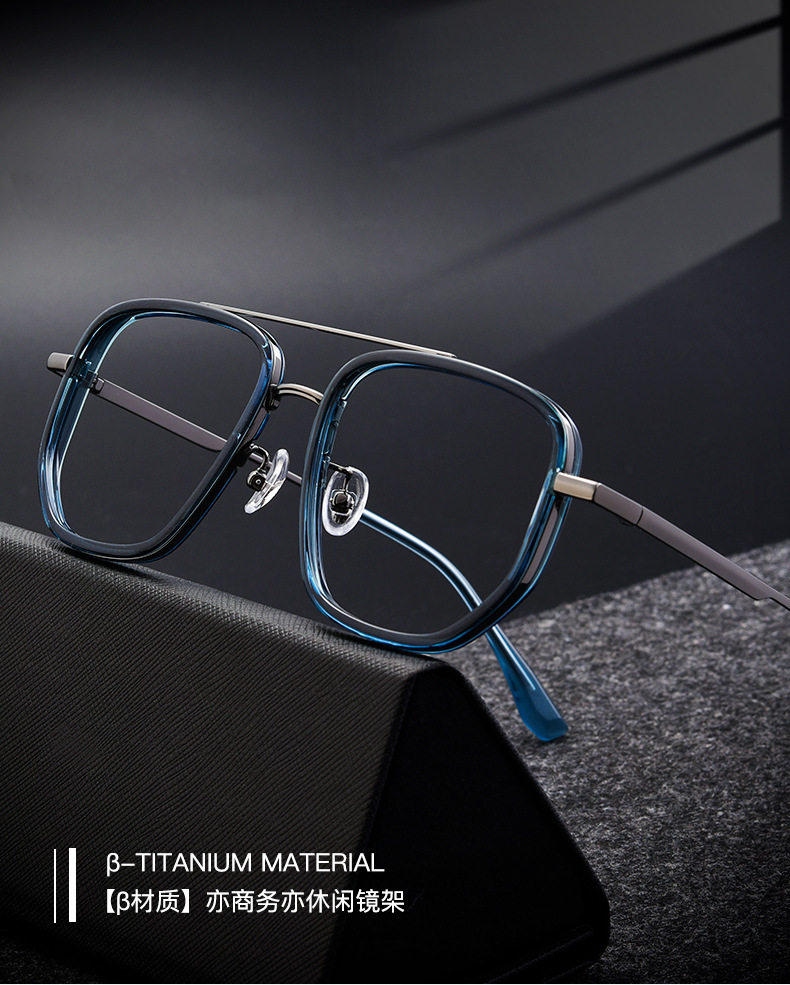Popular 2217Yj Retro Polygonal Double-Bridge Pure Titanium Frame Fashionable Casual Large Face Men's Eyeglass Frame Danyang Glasses