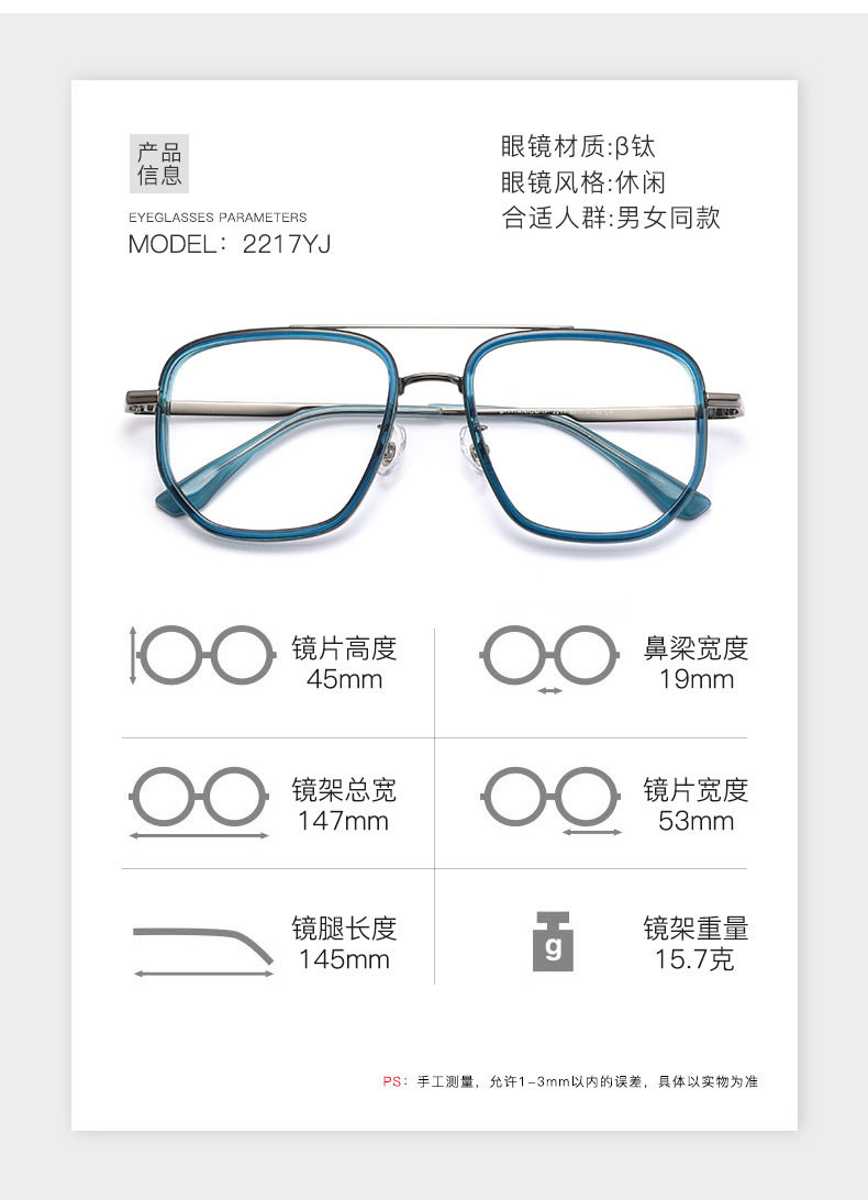 | Frame color | Translucent blue gunmetal frame,Black gold frame,Black silver frame,Black frame,Transparent silver frame |