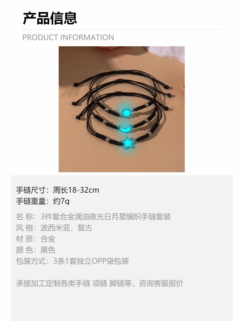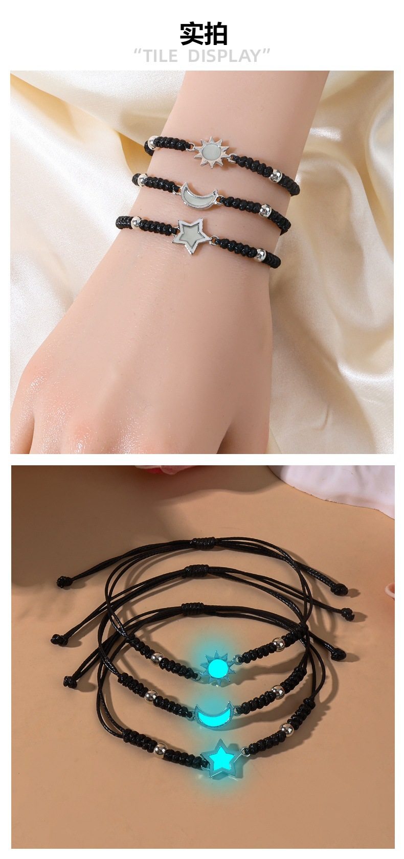 Shein Hot-Selling Sun and Moon Jewelry Cross-Border Exclusive Luminous Sun Moon Star Bracelet European and American Retro Woven Bracelet Set