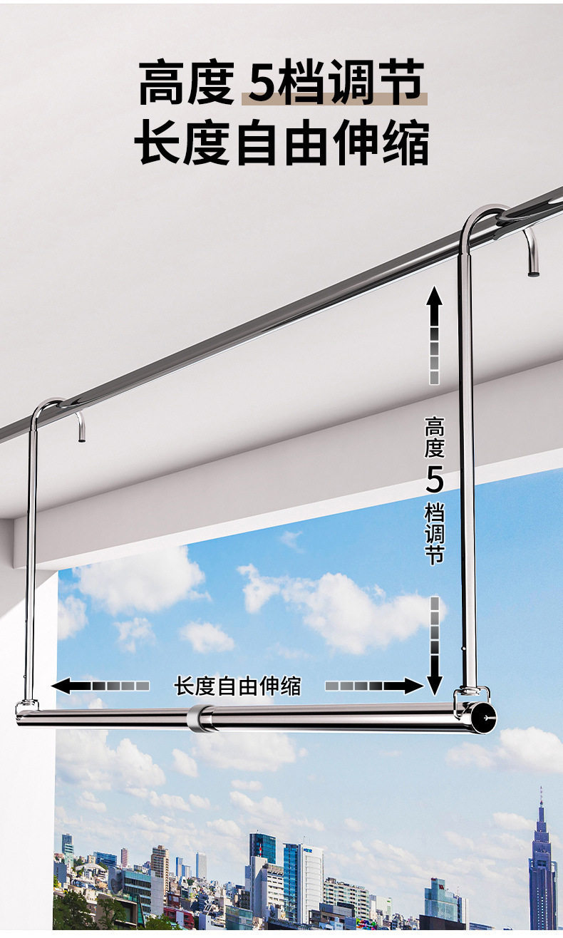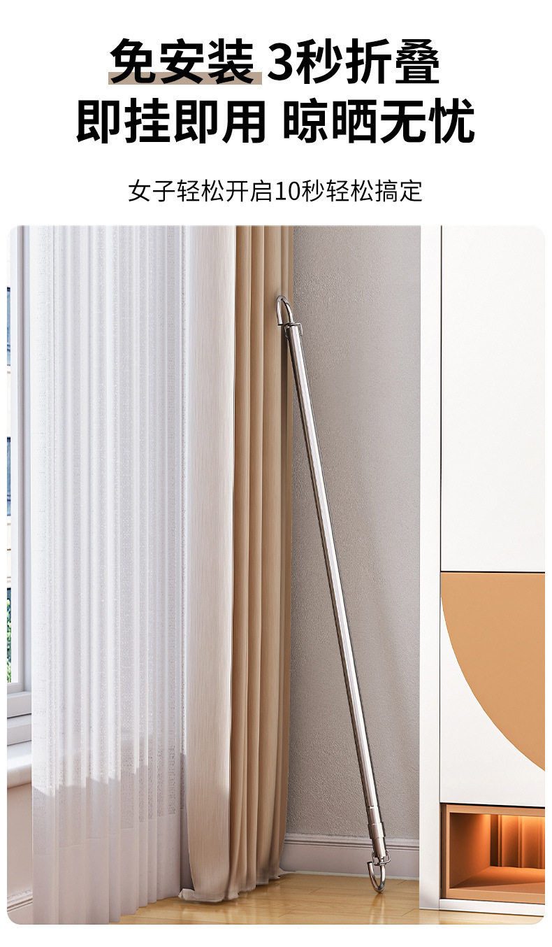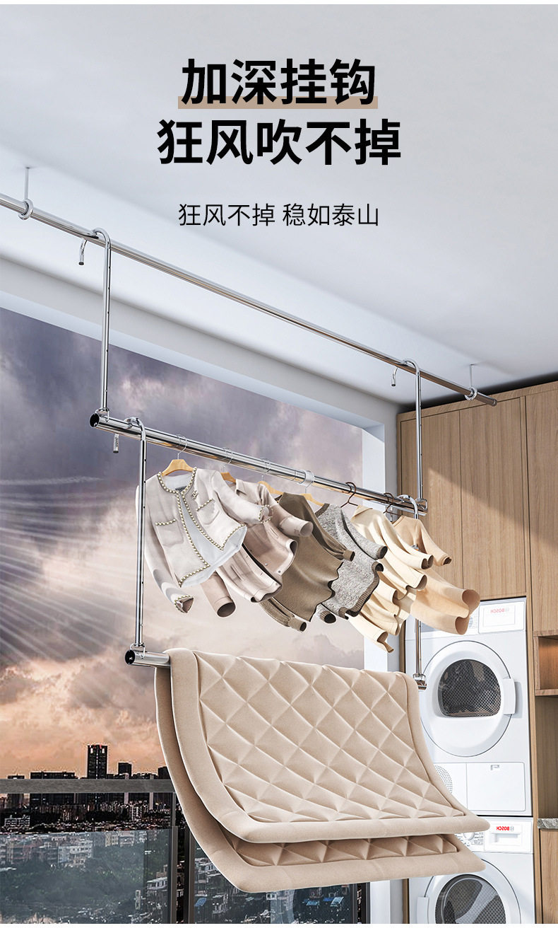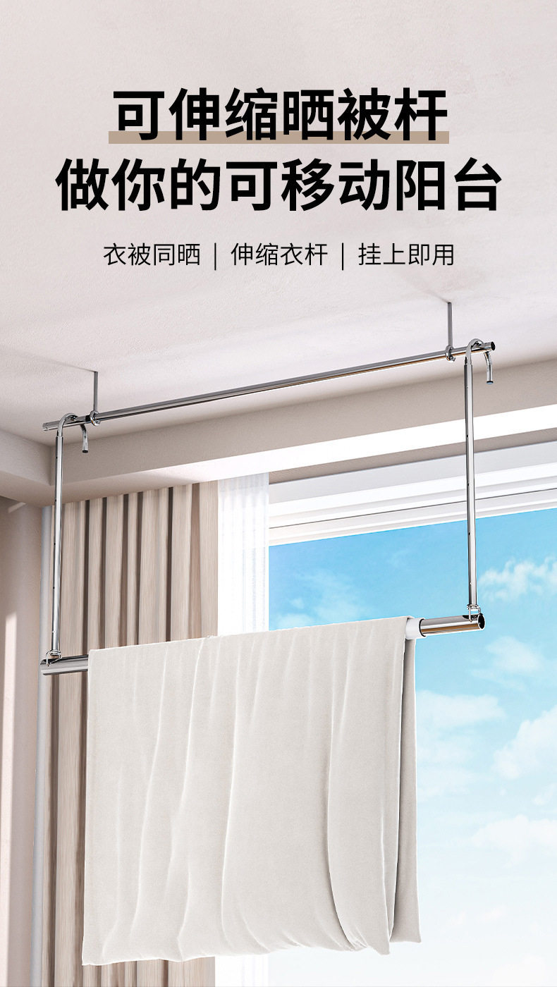 Clothes Drying Rack for Home Balcony, No-Drill Telescopic Clothes Rod, Adjustable Clothes Hanger, Stainless Steel Quilt Drying Tool
