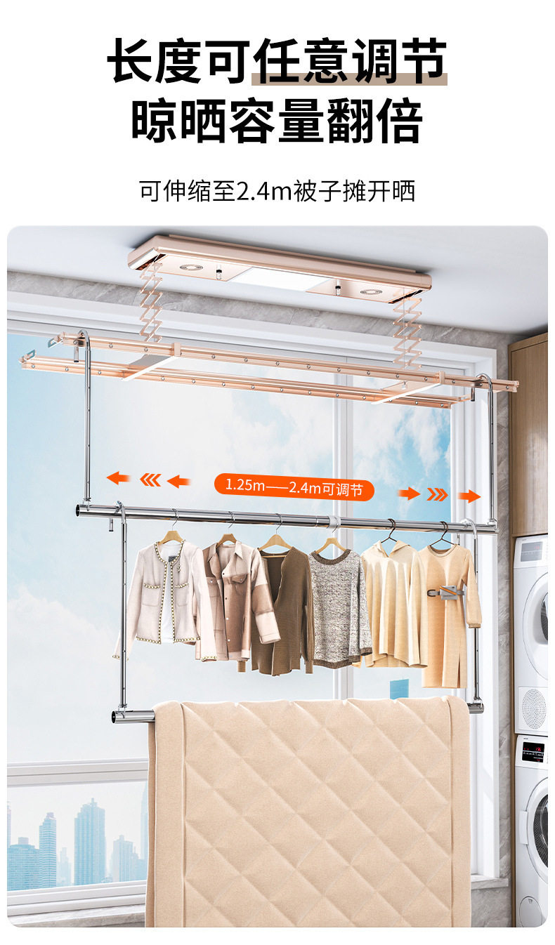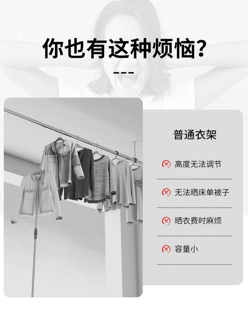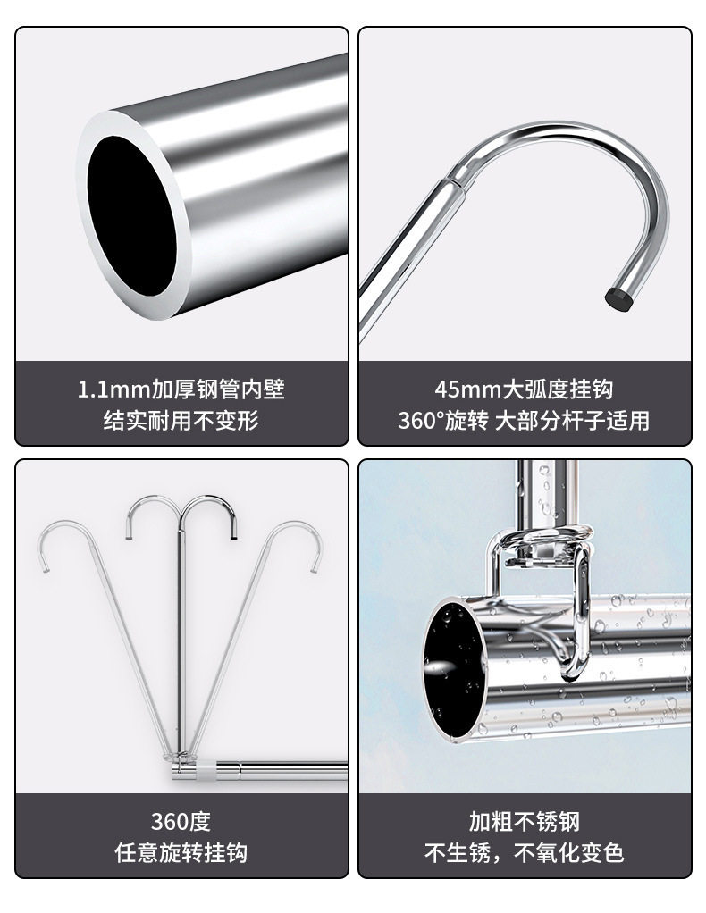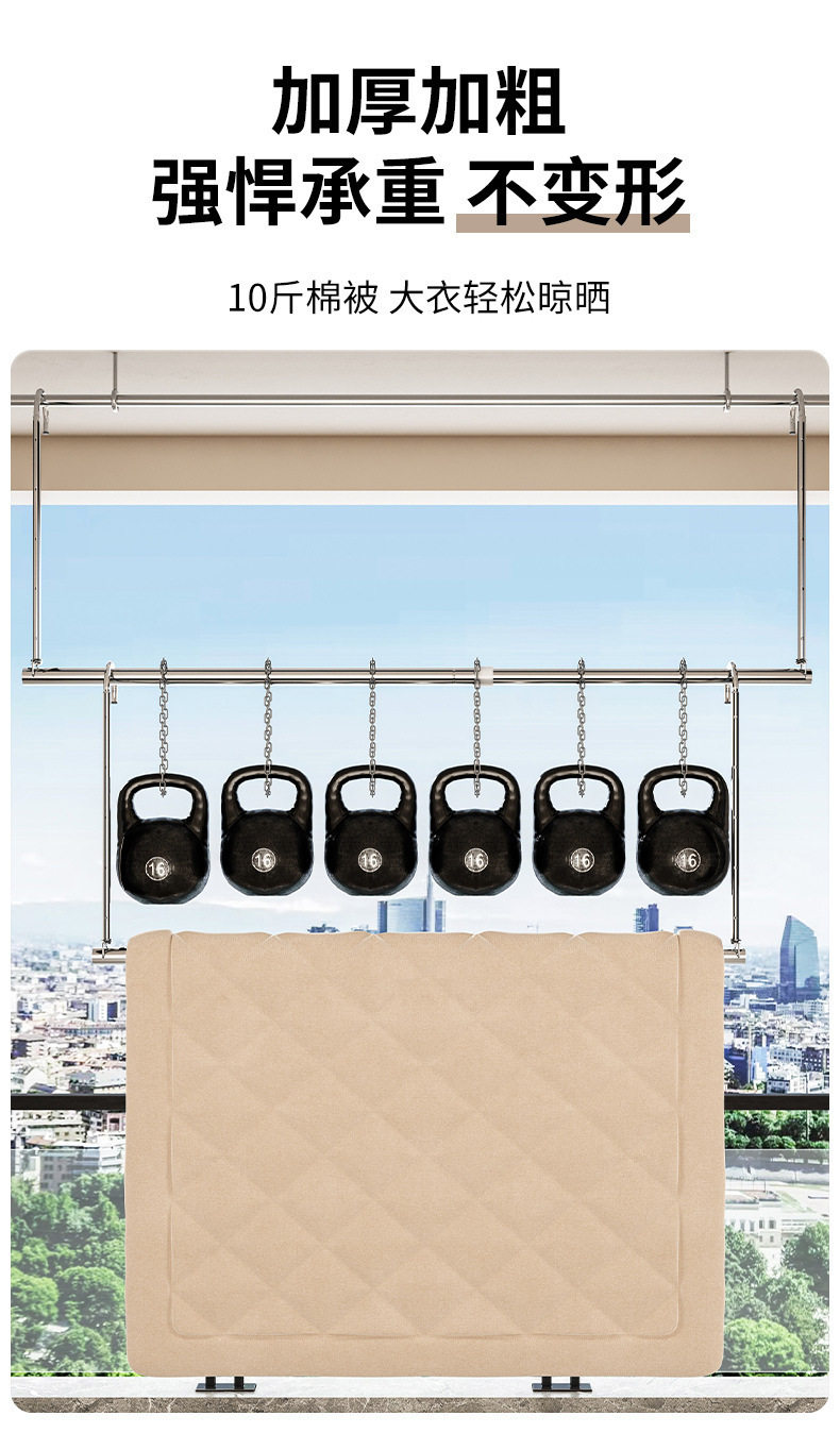 Clothes Drying Rack for Home Balcony, No-Drill Telescopic Clothes Rod, Adjustable Clothes Hanger, Stainless Steel Quilt Drying Tool