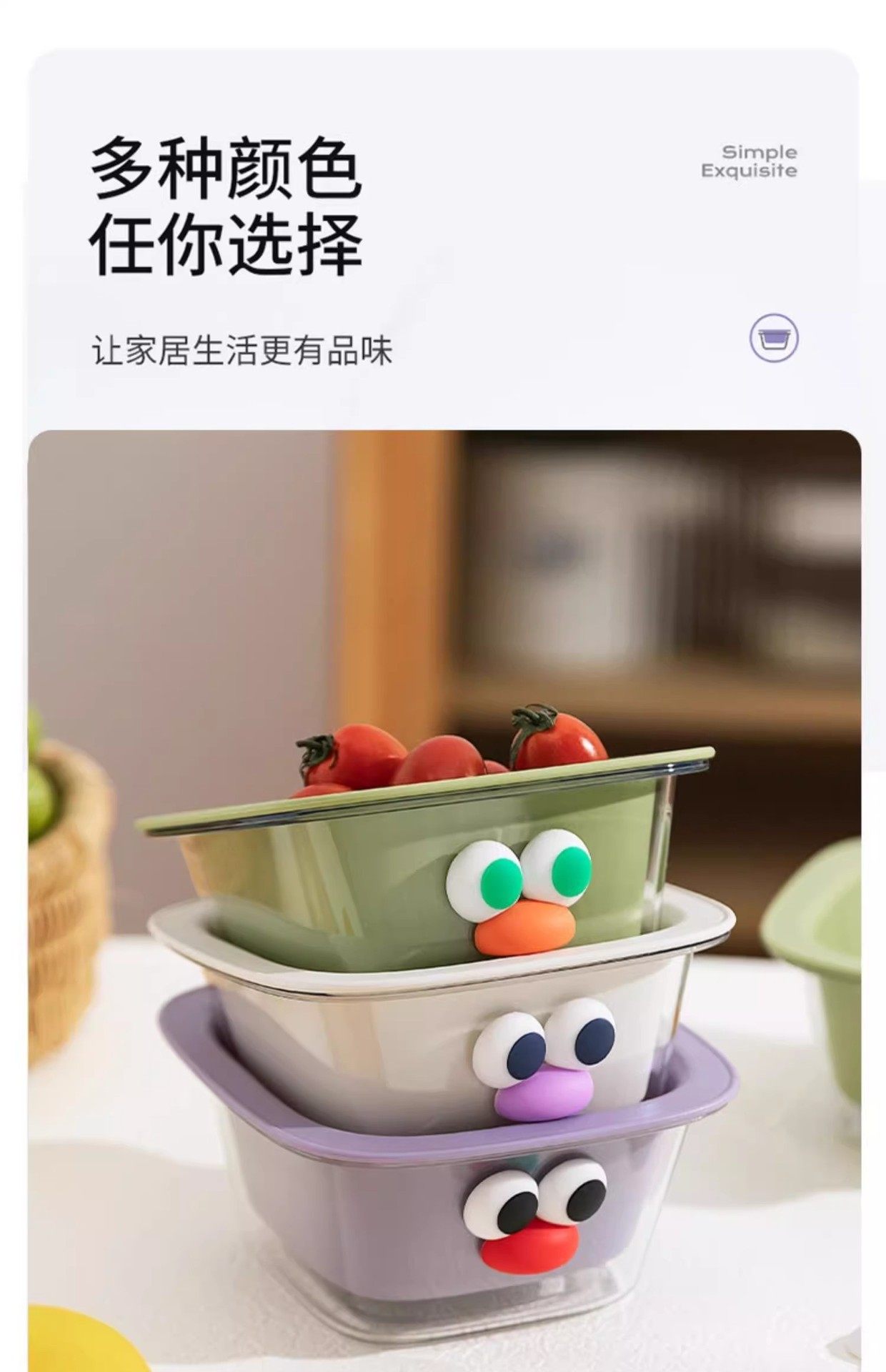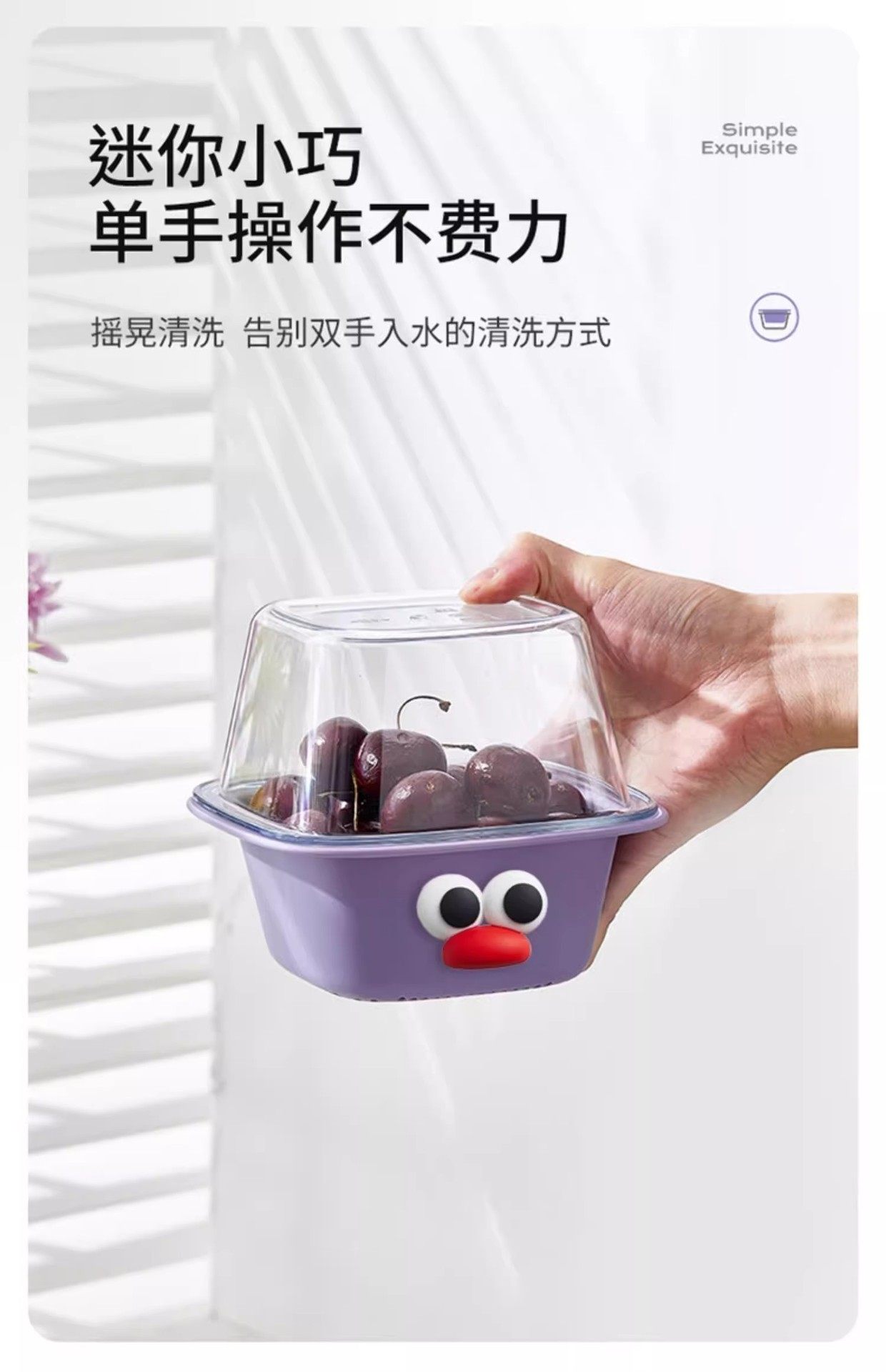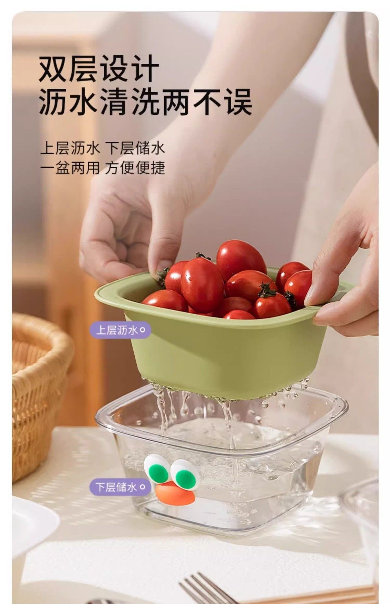 Cute Cartoon Big-Eyed Draining Basket, Kawaii Small Fruit Washing Basket, Convenient Candy-Colored Dopamine Draining Basin