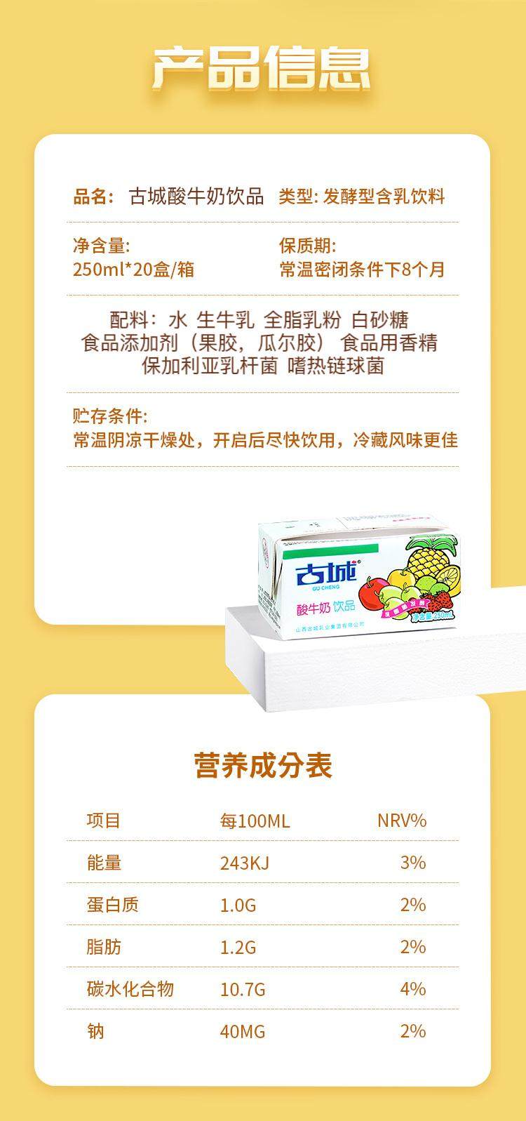 Shanxi Specialty Ancient City Yogurt Yogurt Whole Box 250ml*20 Boxed Lactic Acid Bacteria Fermented Dairy Milk-Containing Drinks