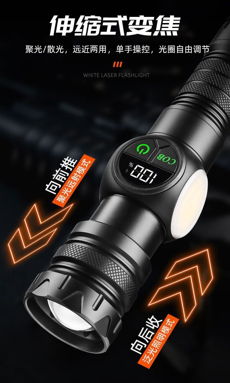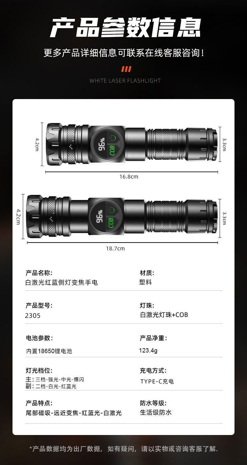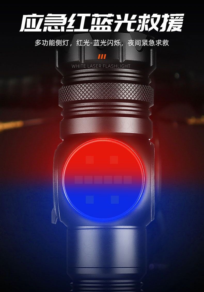Abs White Laser + Cob Flashlight USB Charging Built-In Outdoor Zoom Long-Range Red and Blue Warning Led Flashlight