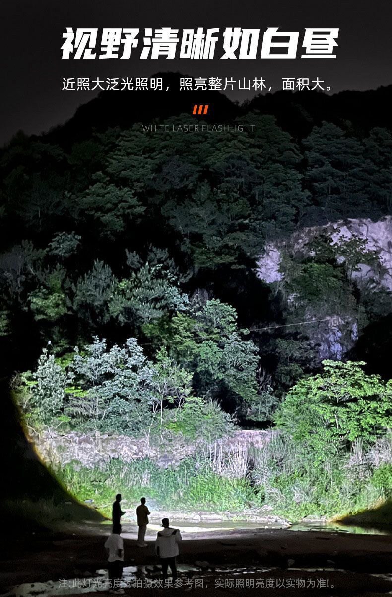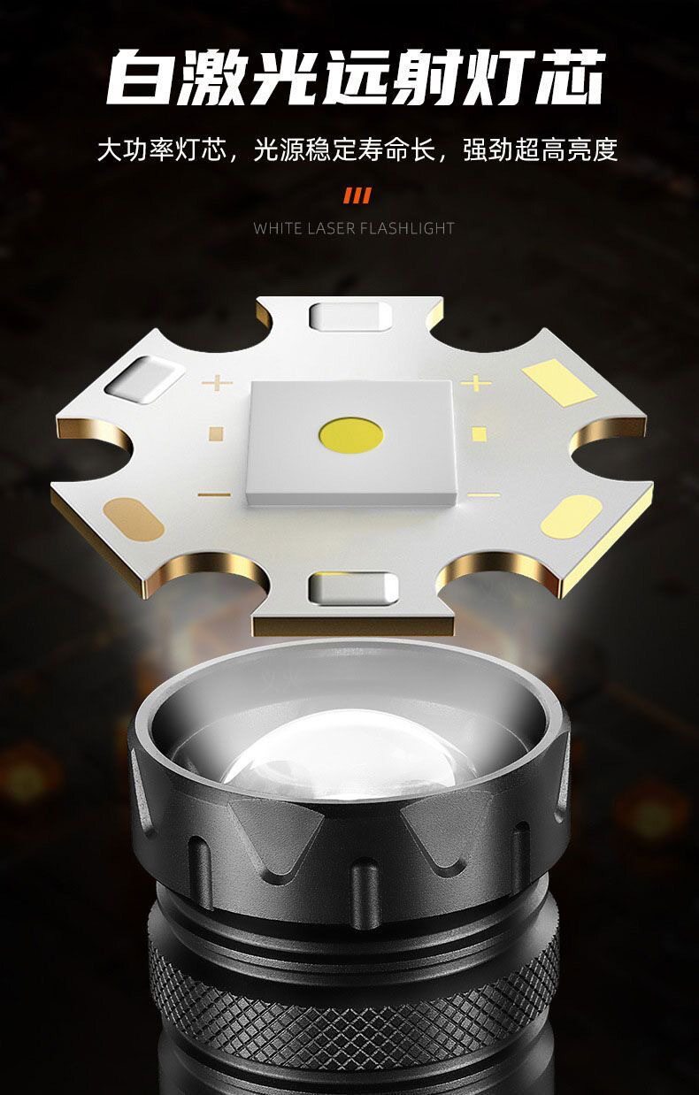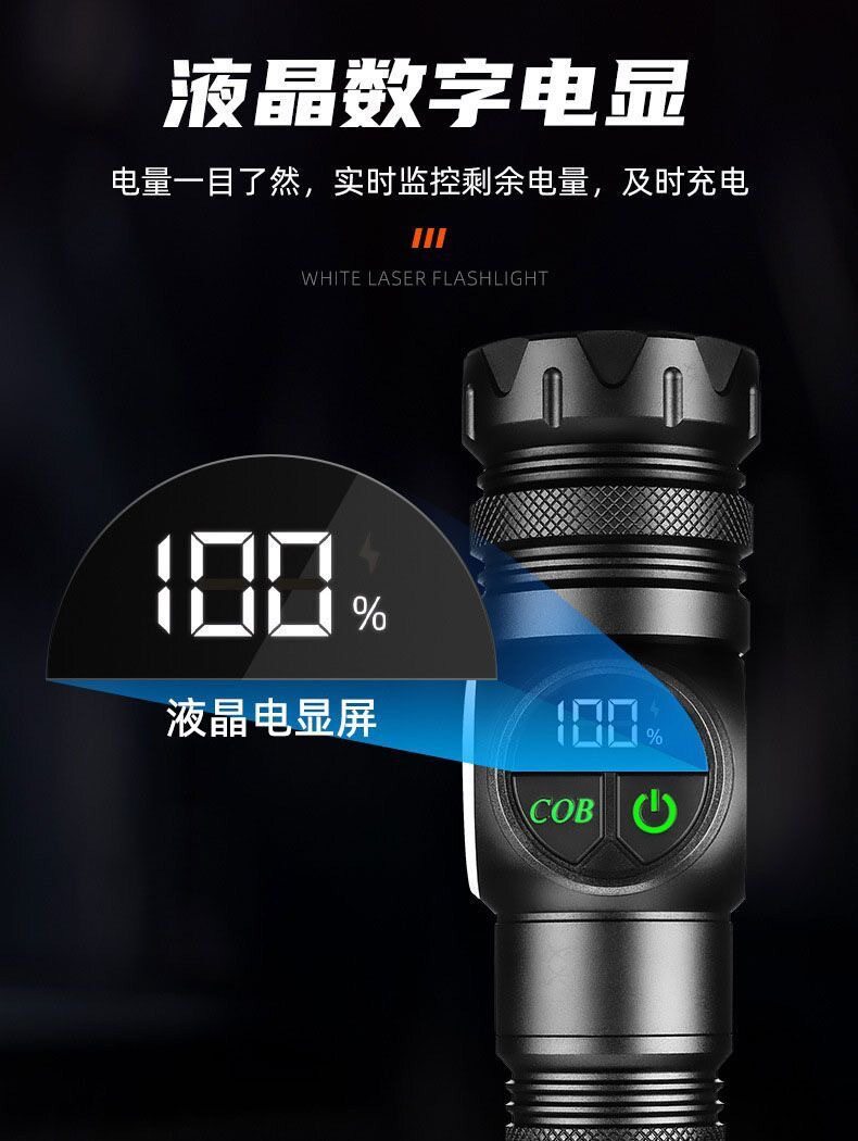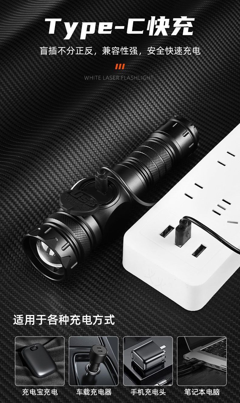 Abs White Laser + Cob Flashlight USB Charging Built-In Outdoor Zoom Long-Range Red and Blue Warning Led Flashlight