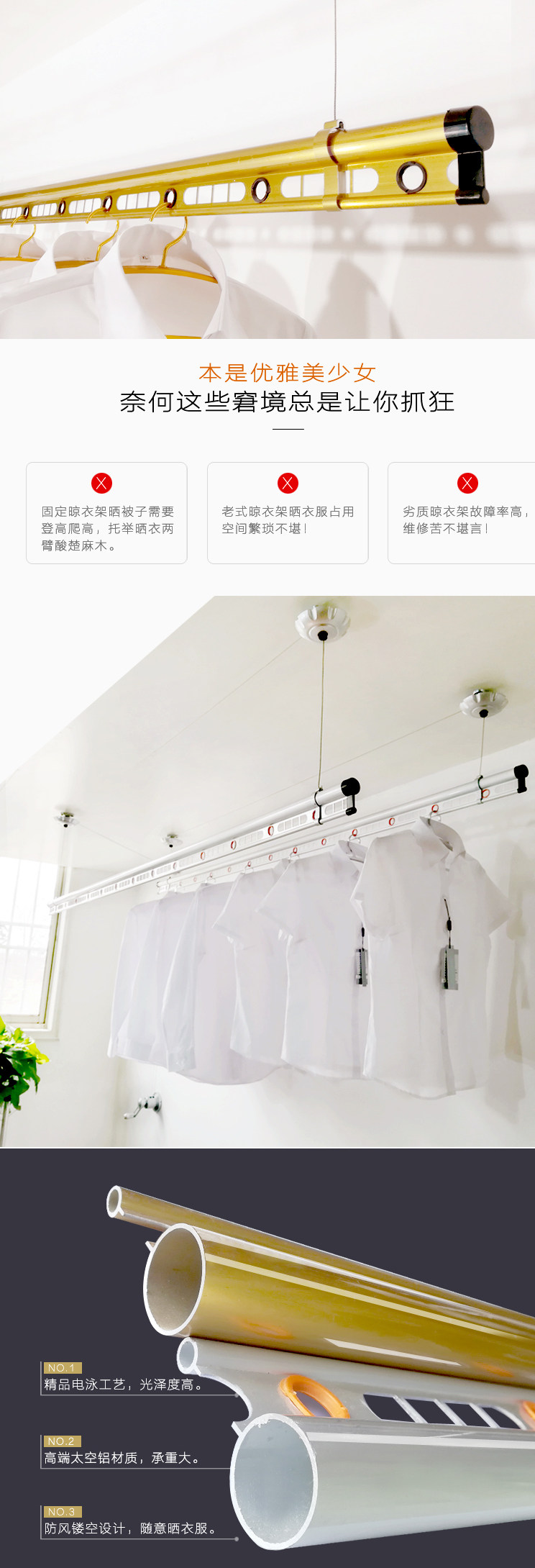 Clothes Drying Rack Aluminum Pole Clothes Rack Hand-Cranked Adjustable Clothes Drying Accessories Pole Double Pole Balcony Indoor Cooling Free Shipping