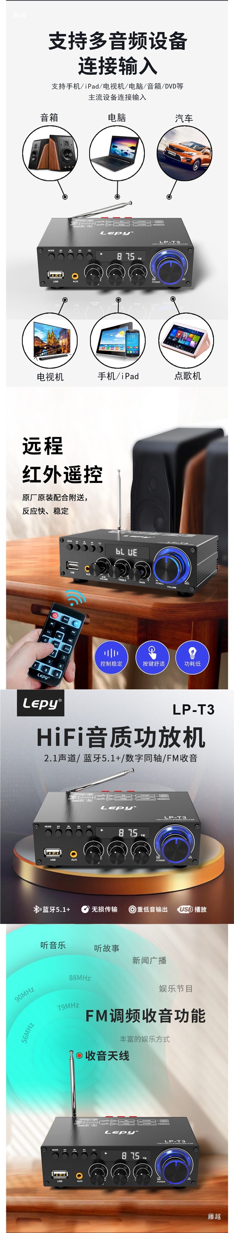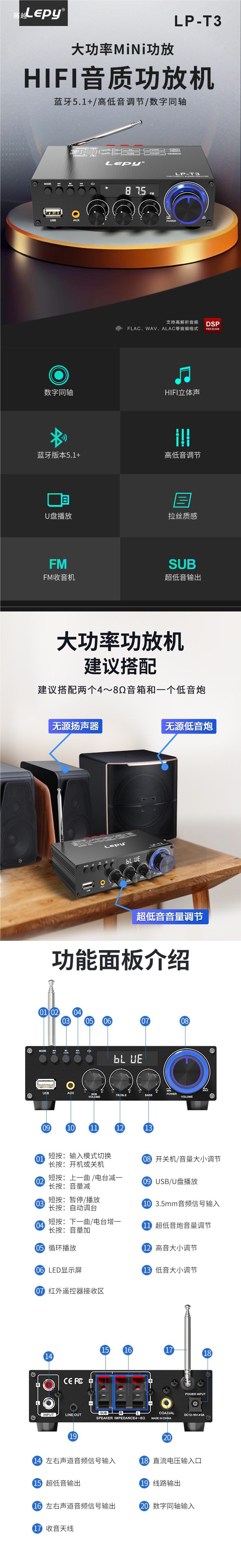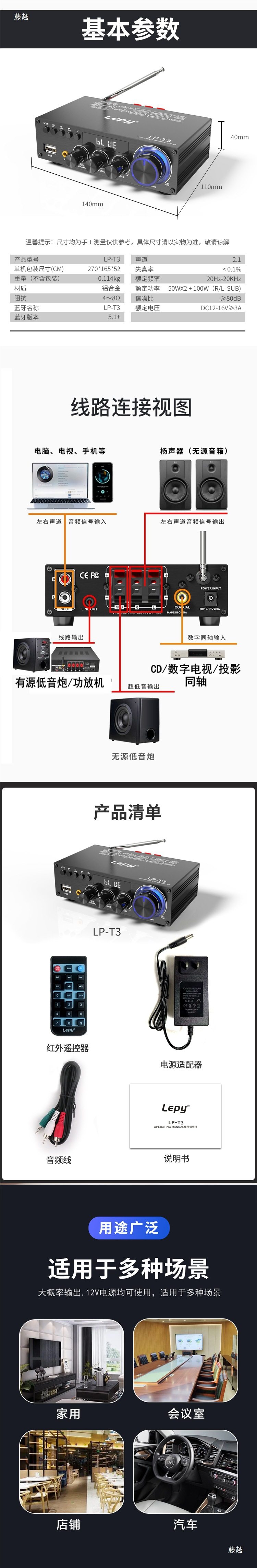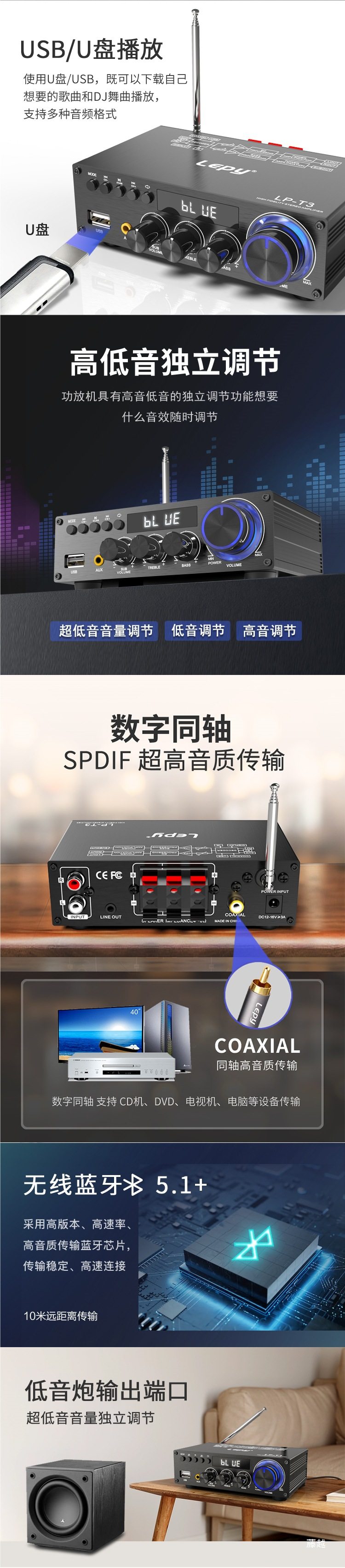2.1 Channel Bluetooth Radio Amplifier U Disk Lossless Music Playback Active Passive Subwoofer Digital Coaxial T3