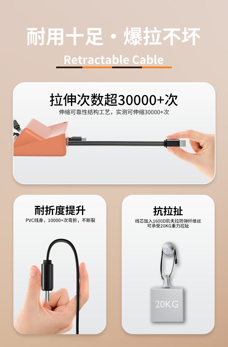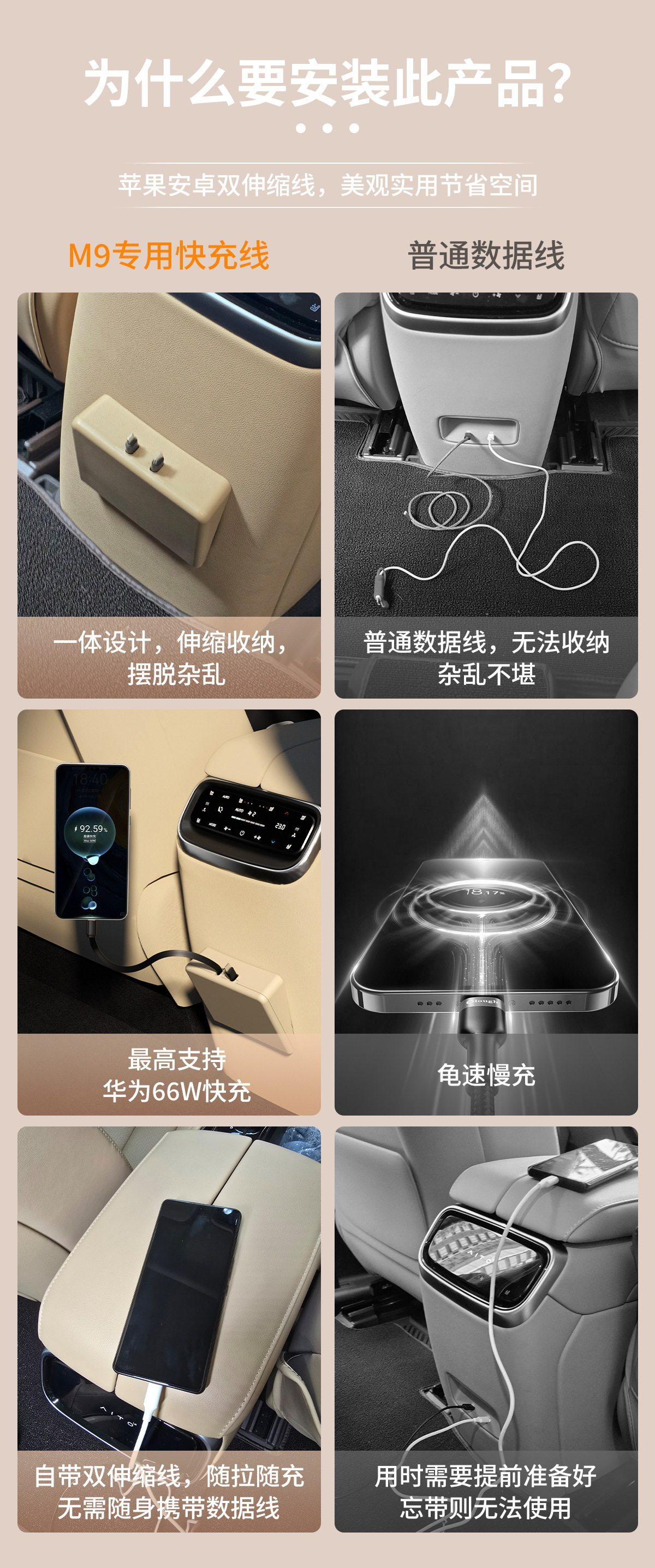 Suitable for Aito M7 Car Charger Rear Fast Charging Docking Station 66W Dual Typec Retractable Charging Cable