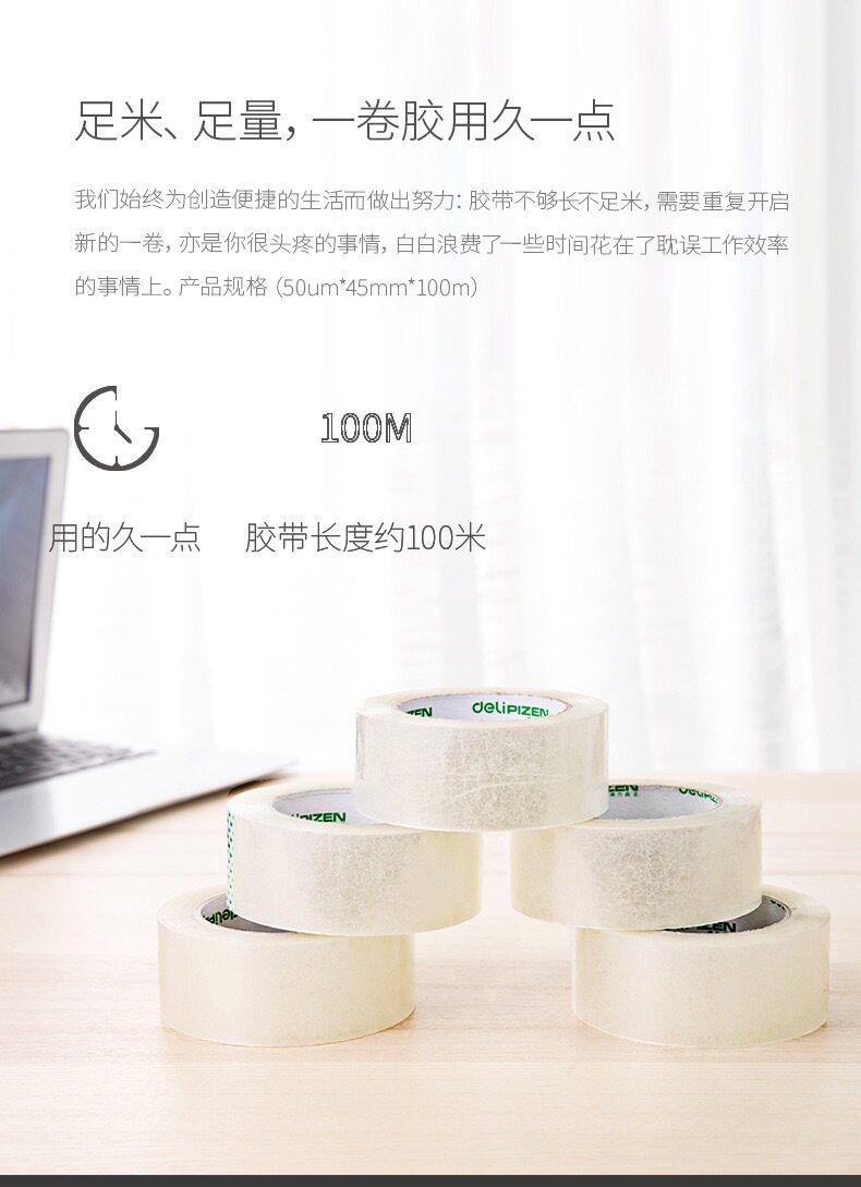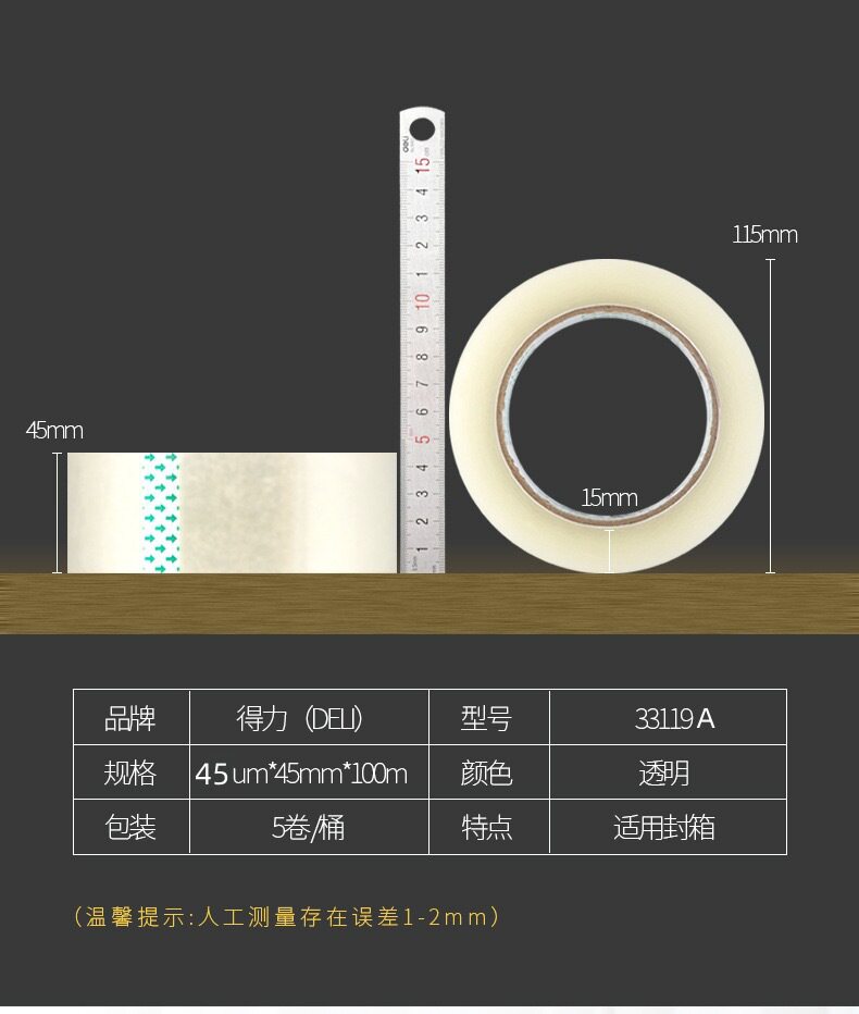 Deli Transparent Tape Large Sealing Tape Warehouse Packaging and Delivery 4.5Cm6.0Cm Express Sealing Tape Paper