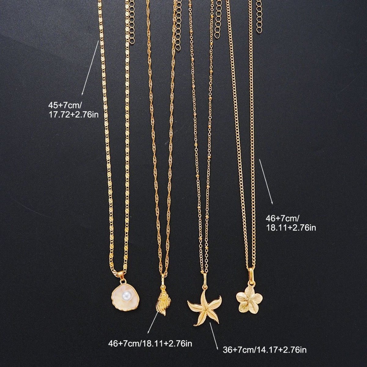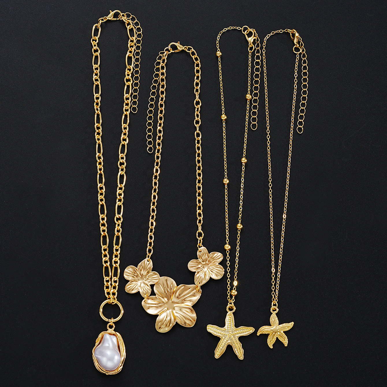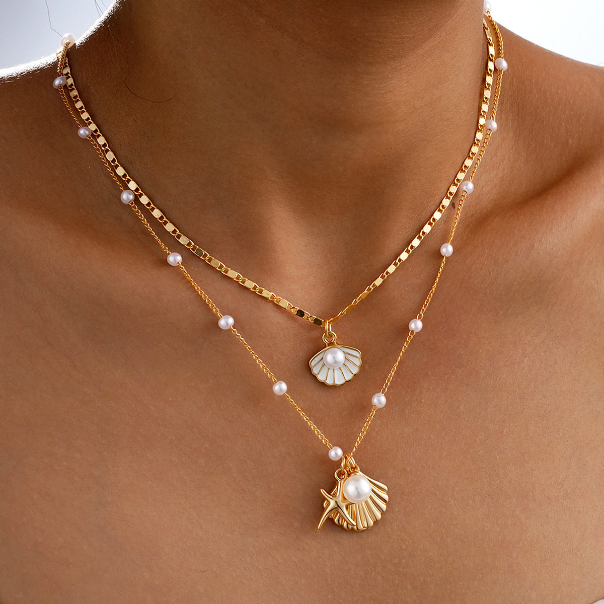 European and American Cross-Border Jewelry Ins Style Starfish Pearl Flower Necklace Set Conch Scallop Flat Snake Chain Necklace Set