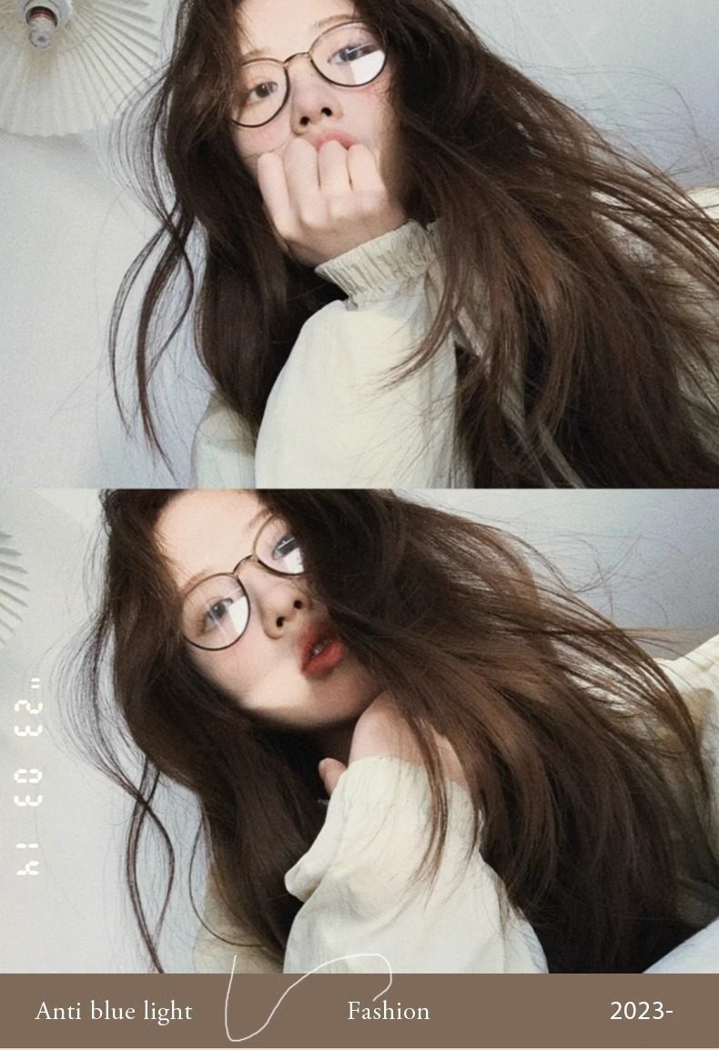 Round Frame Small Face Myopia Fashion Korean Trendy Glasses Can Be Equipped with Prescription Anti-Blue Light Flat Glasses for Students Without Makeup