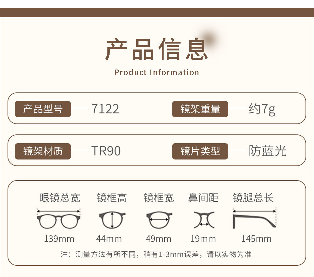 | Lens color | Anti-blue light flat mirror,Myopia 50 degrees,Myopia 100 degrees,Myopia 150 degrees,Myopia 200 degrees,Myopia 250 degrees,Myopia 300 degrees,Myopia 350 degrees,Myopia 400 degrees,Myopia 450 degrees,Myopia 500 degrees,Myopia 550 degrees,Myopia 600 degrees,Glasses frame [without lining] |