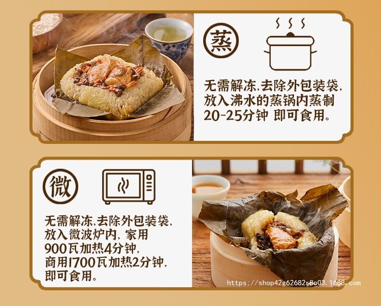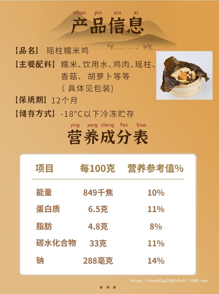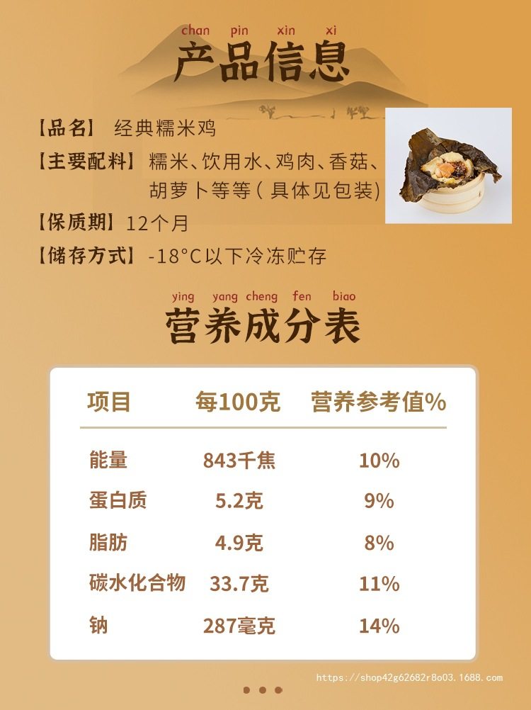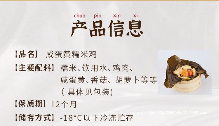 | Packaging specifications | Classic glutinous rice chicken 1.2kg*2 packs (12 pieces in total),Salted egg yolk glutinous rice chicken 900g*2 packs (12 pieces in total),Sticky rice chicken with scallops 900g*2 packs (12 pieces in total),Salted egg yolk glutinous rice chicken*1 pack+glutinous rice chicken*1 pack,Salted egg yolk glutinous rice chicken*1 pack + scallop glutinous rice chicken*1 pack,Sticky rice chicken with scallops*1 pack+sticky rice chicken*1 pack,One pack of each of three styles,Classic glutinous rice chicken 1.2kg*1 pack [6 pieces],Yaoyu glutinous rice chicken 900g*1 pack [6 pieces],Salted egg yolk glutinous rice chicken 900g*1 pack [6 pieces] |