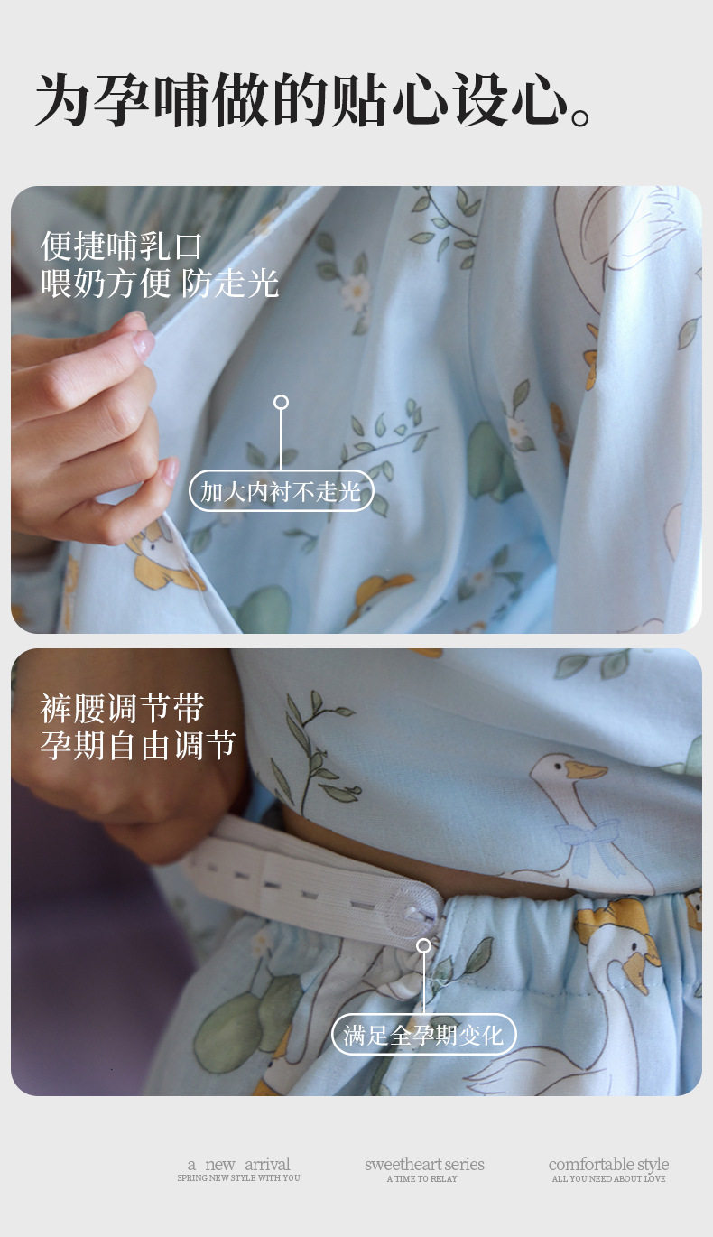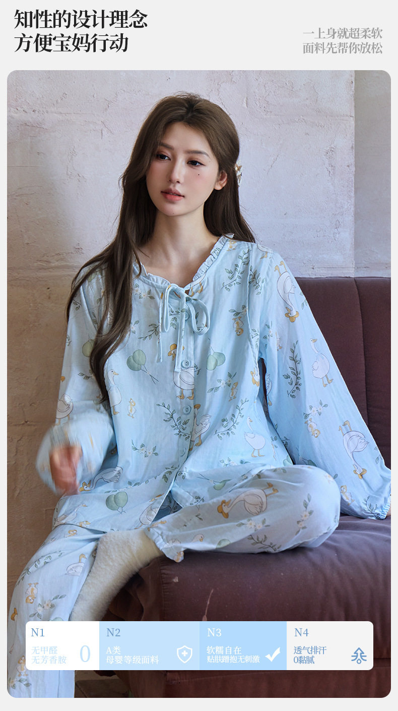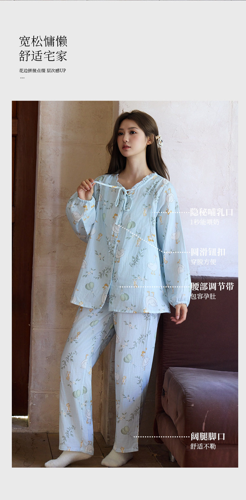 New Pure Cotton Gauze Confinement Suit Spring, Summer and Autum Thin Pregnancy and Postpartum Nursing Suit Home Wear Pajamas