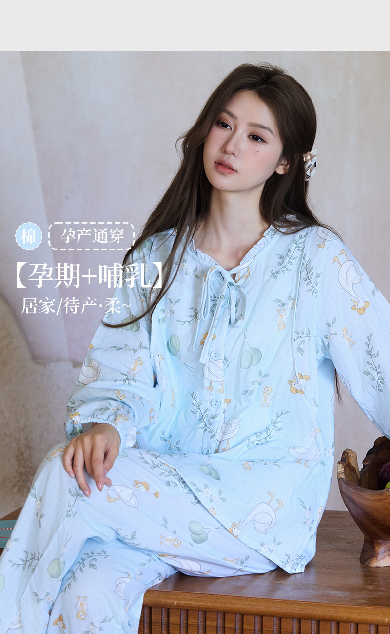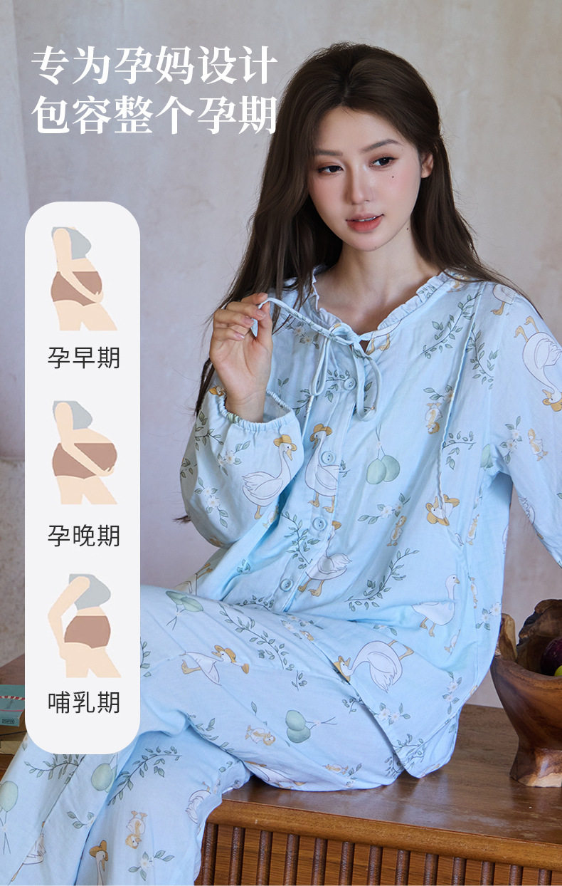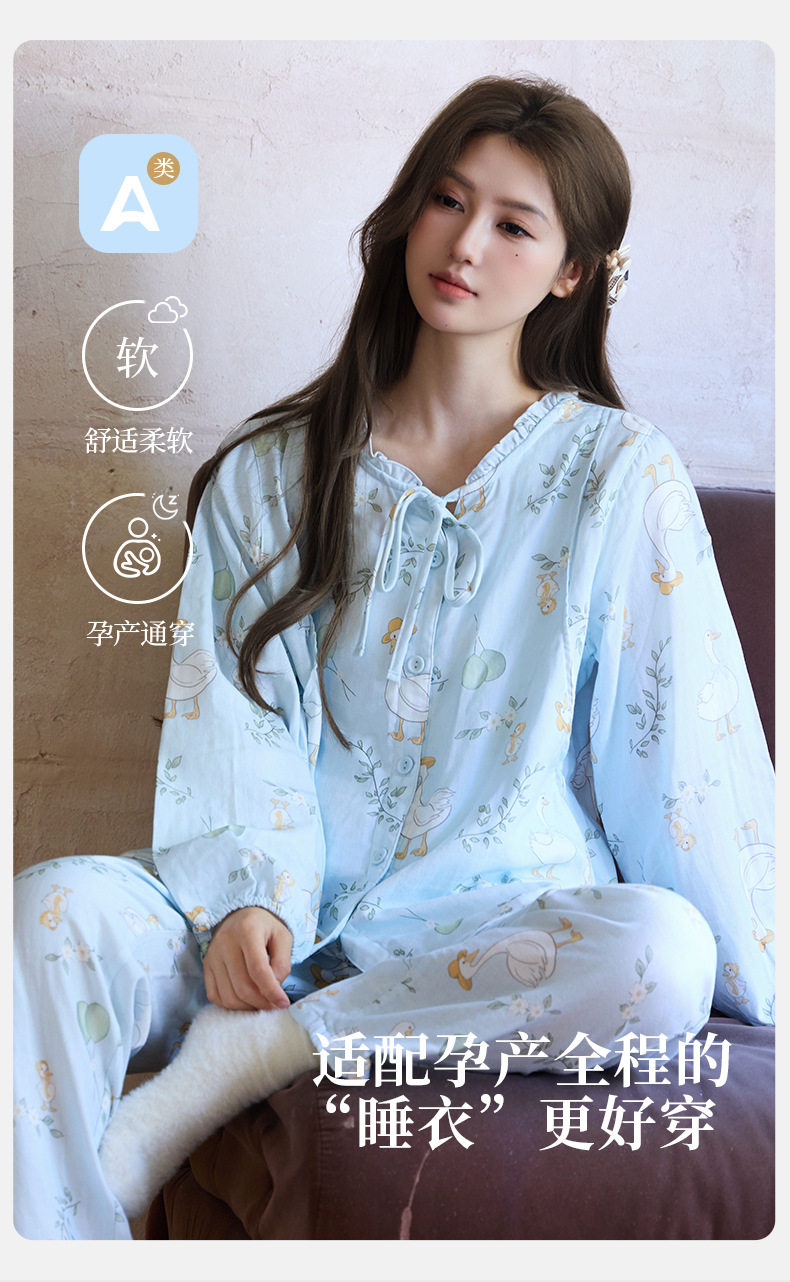 New Pure Cotton Gauze Confinement Suit Spring, Summer and Autum Thin Pregnancy and Postpartum Nursing Suit Home Wear Pajamas