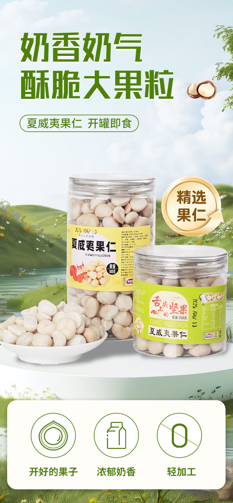 Macadamia Nuts 500g Whole Kernels Half Kernels Shell-Free Milk Flavor Canned 250g Peel-Free Nuts Snacks