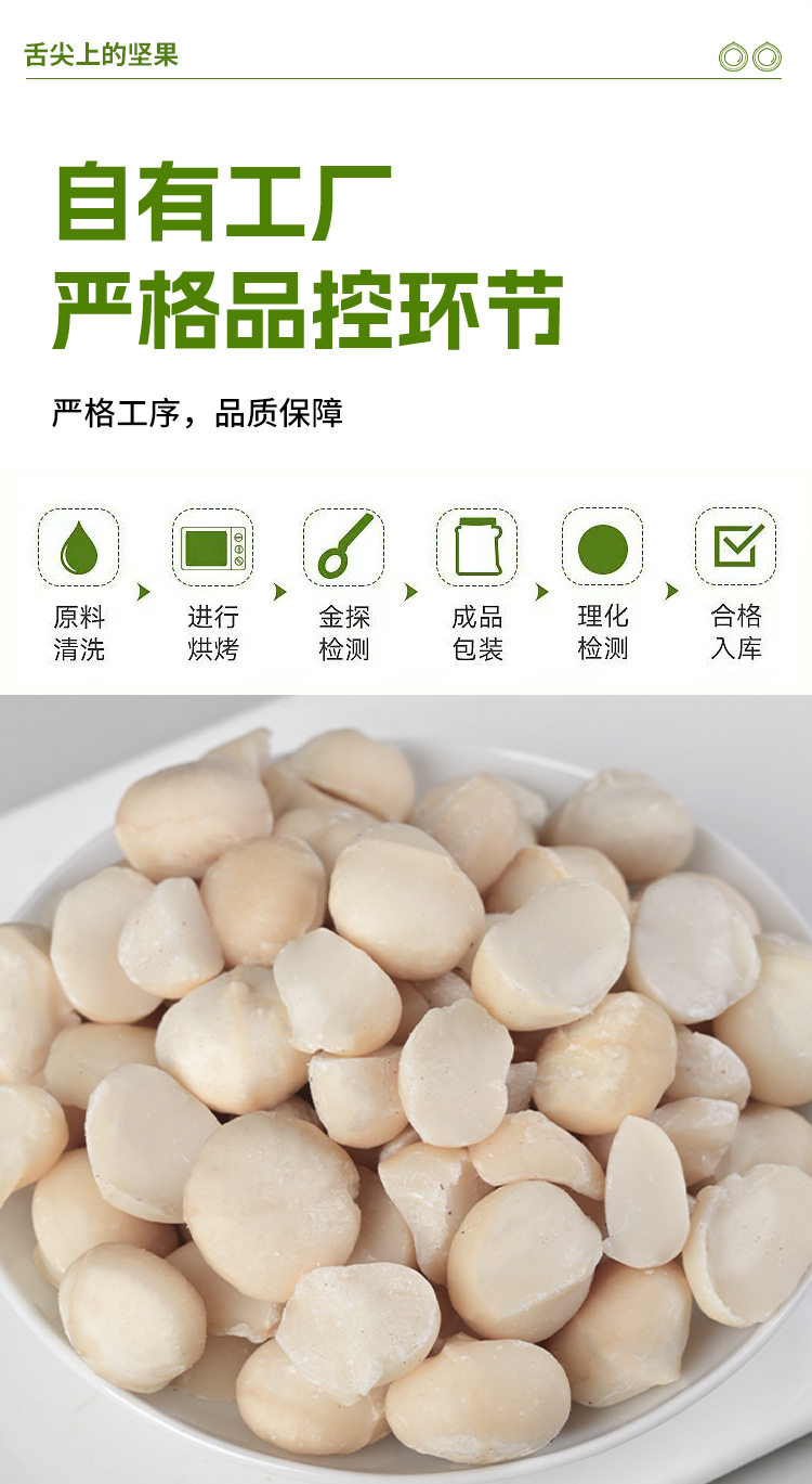 | Raw materials and ingredients | Macadamia nuts, white sugar, edible salt, etc |