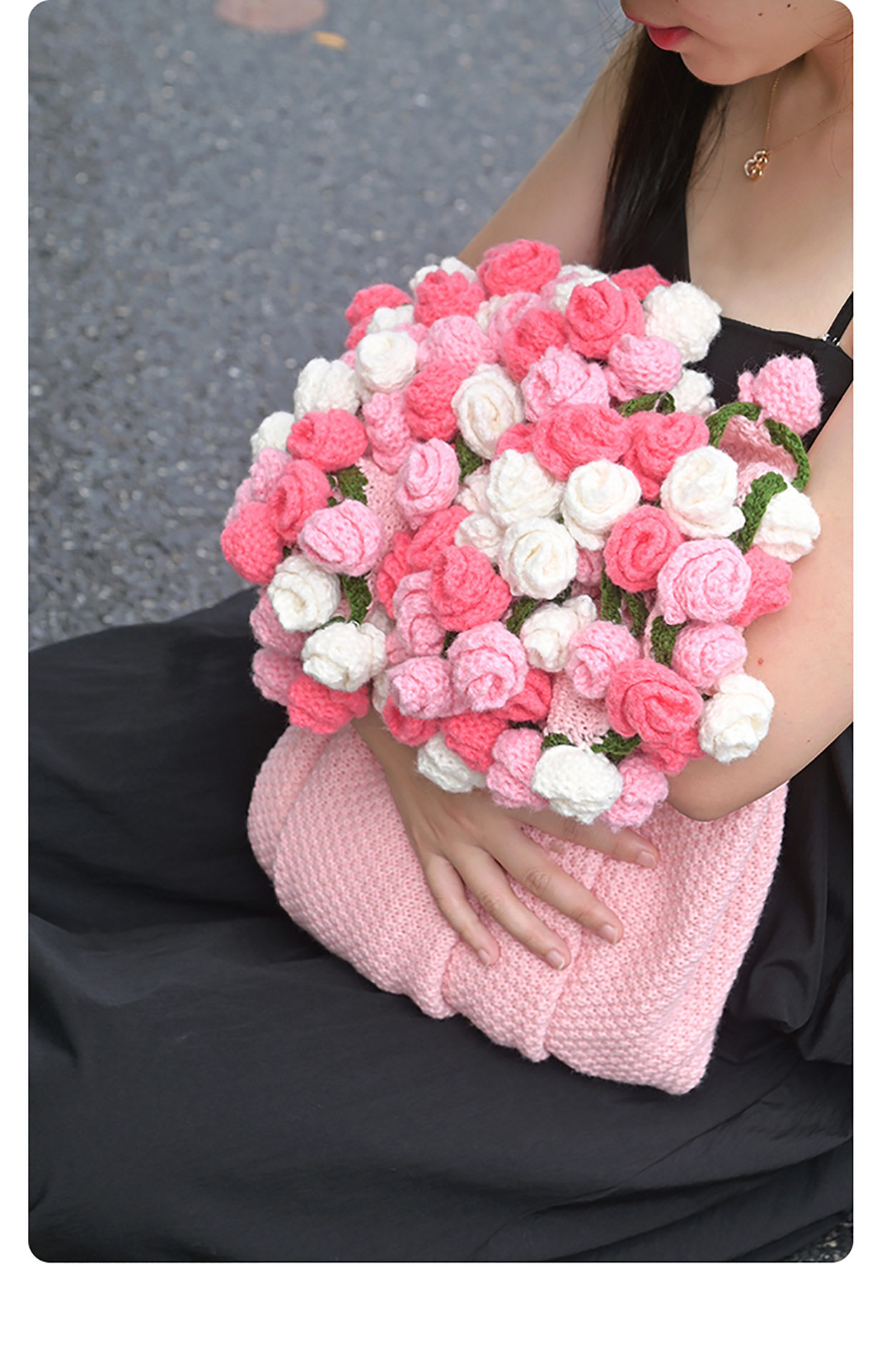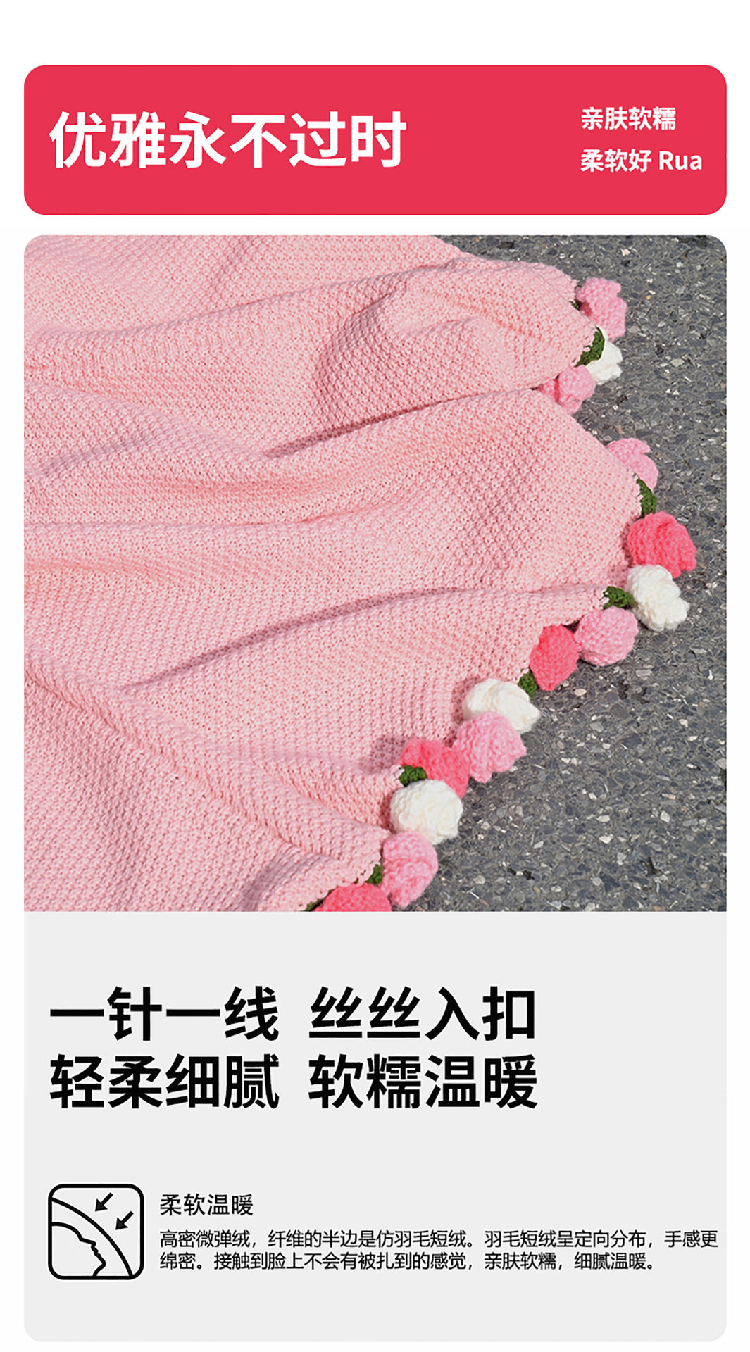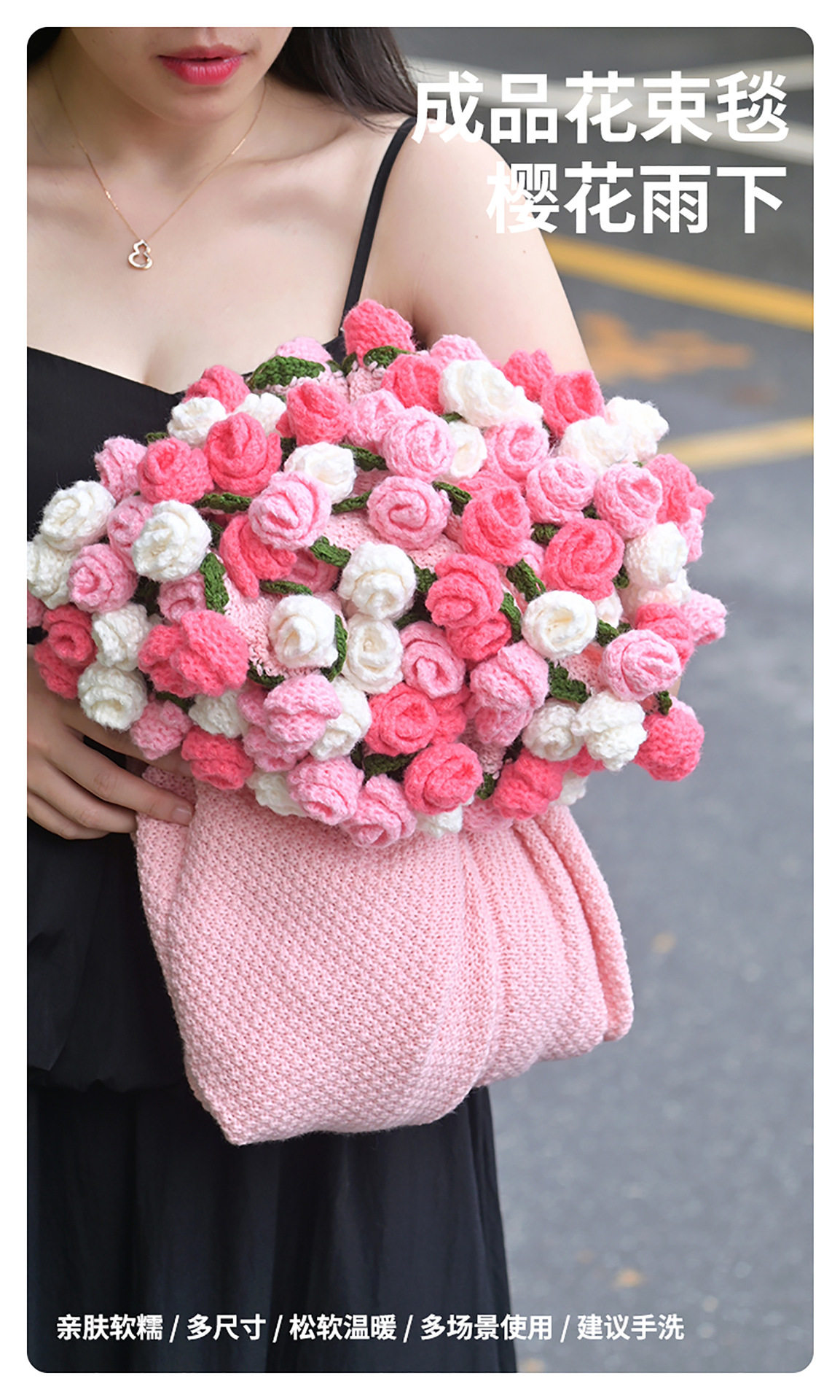 Finished Rose Bouquet Knitted Blanket Hand-Knitted Gift for Girls Sofa Nap Blanket Photo Props