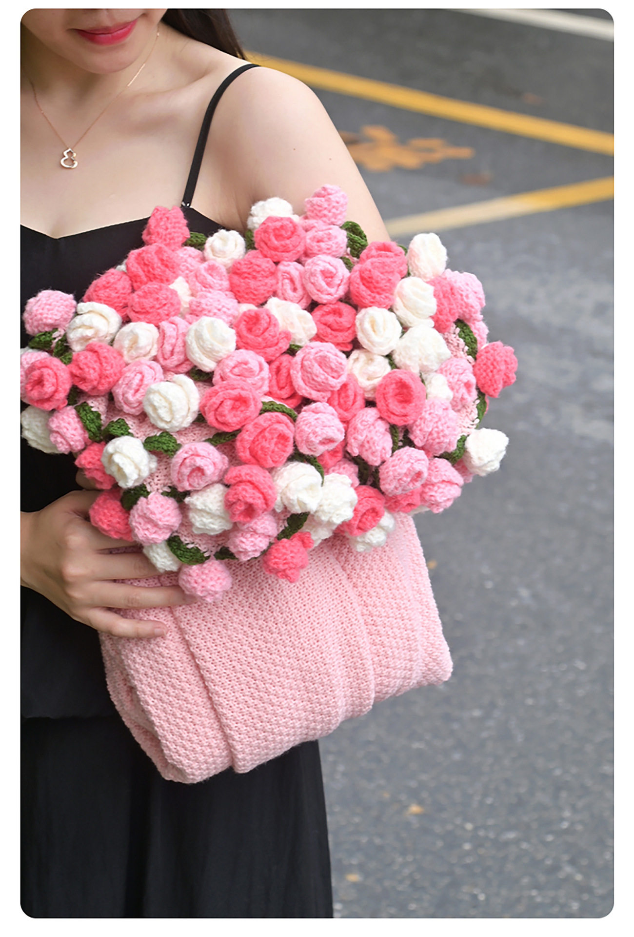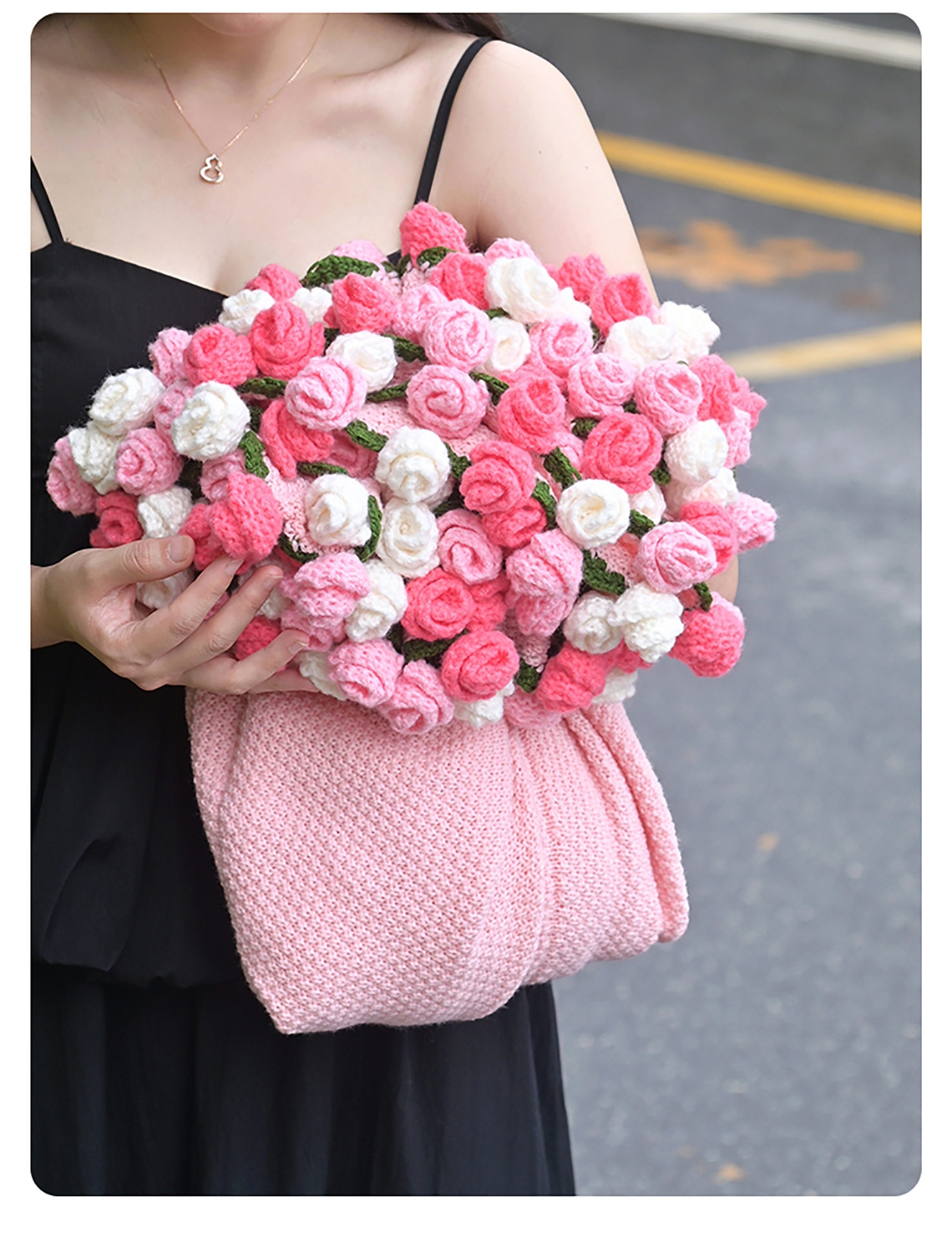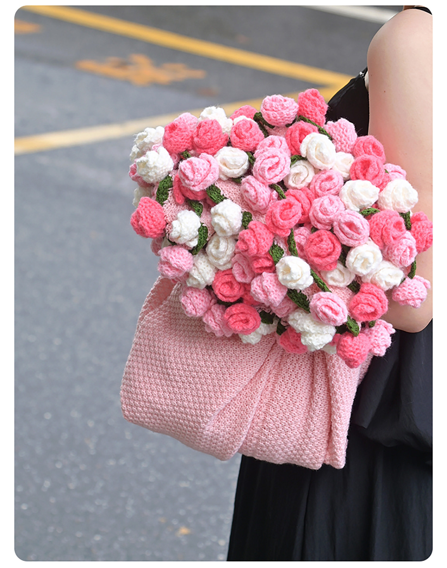 Finished Rose Bouquet Knitted Blanket Hand-Knitted Gift for Girls Sofa Nap Blanket Photo Props