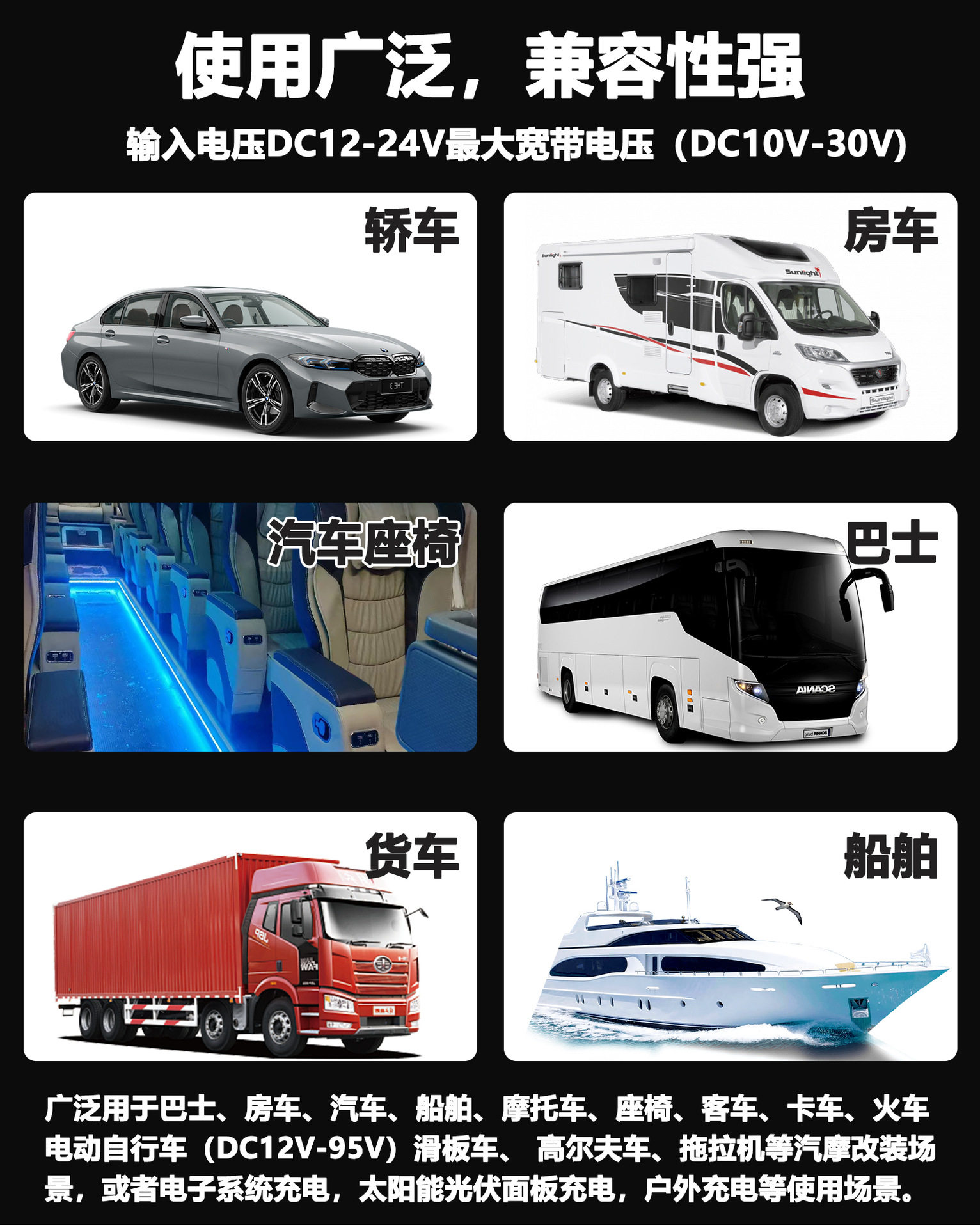 | Use scenario | Cars, buses, rvs, passenger seats, ships, yachts, motorcycles, electric vehicles, tractors, golf carts, scooters, etc |