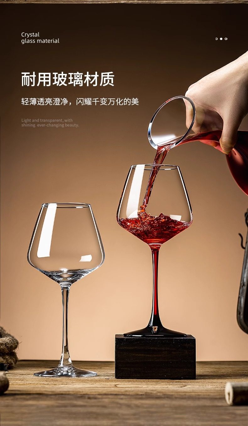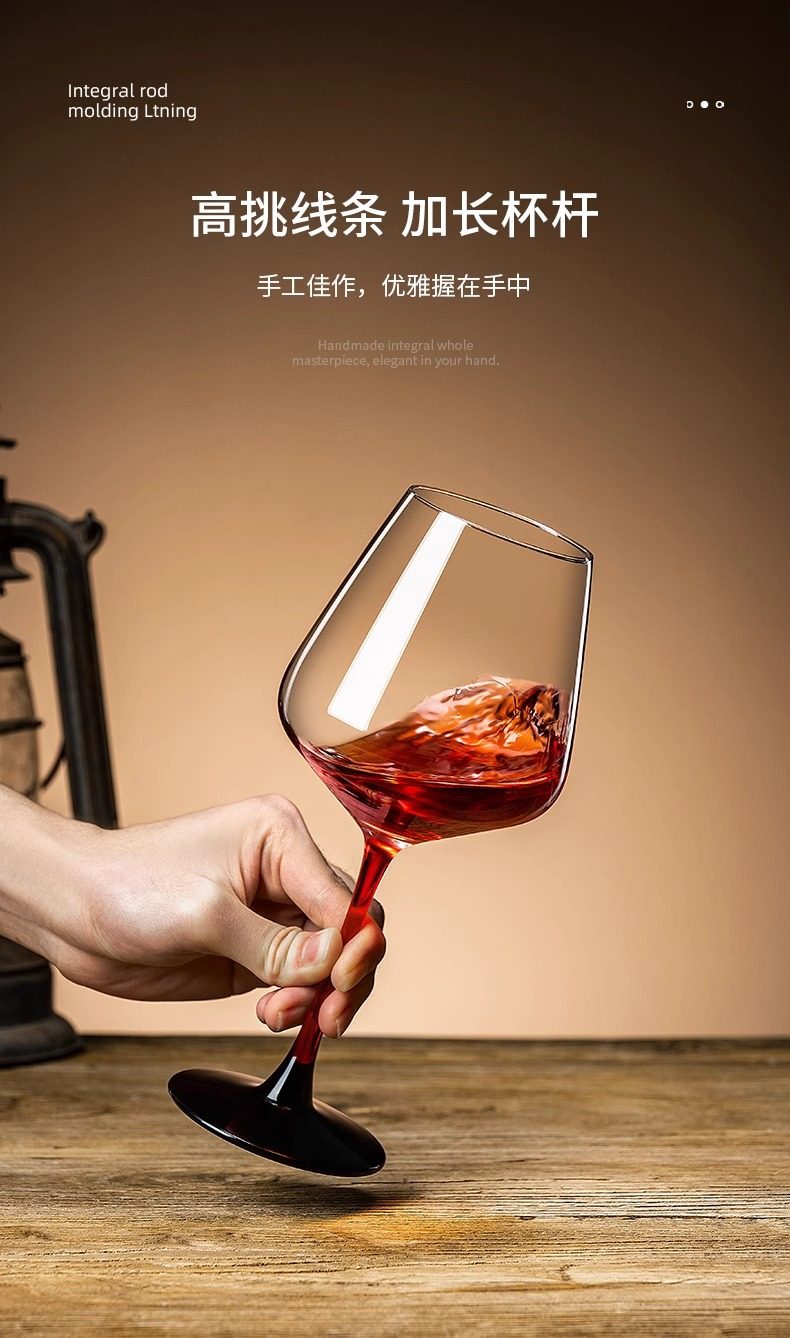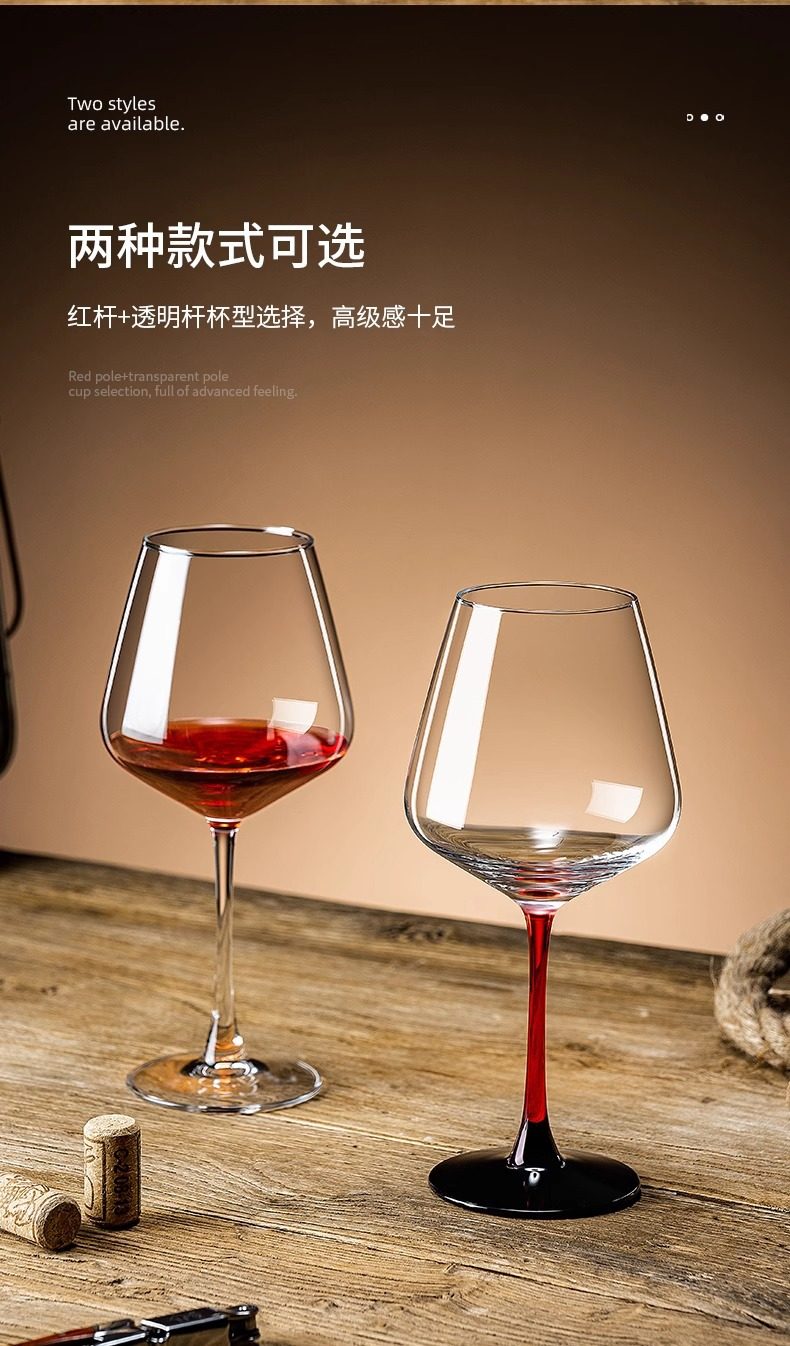 Red Wine Glass Red Pole Black Pole Crystal Glass Large Capacity Goblet Set Accessible Luxury High-End Home Wine Glass