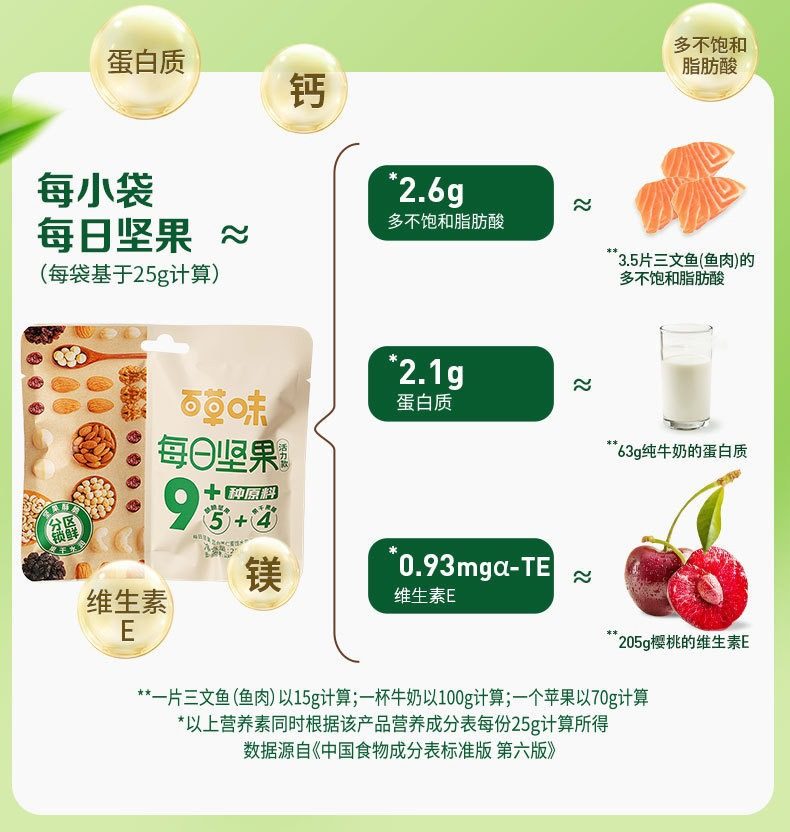 | Packaging specifications | Baicaowei daily nuts 750g |