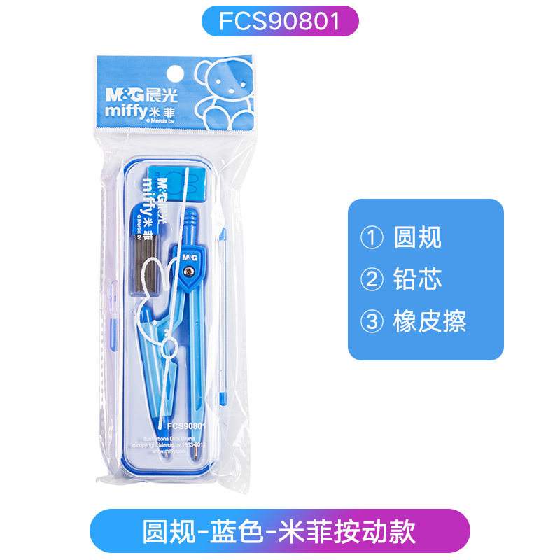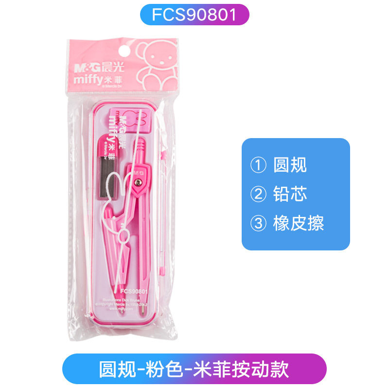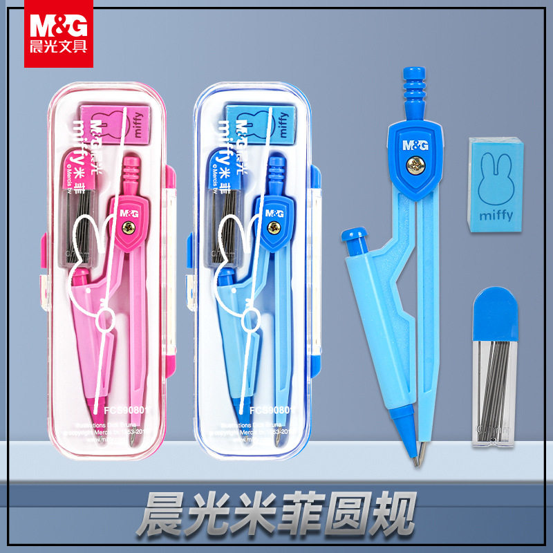 Morning Light Compass Set Miffy 3-Piece Metal Stainless Steel Student Examination Drawing Tool Lead Core Eraser Set