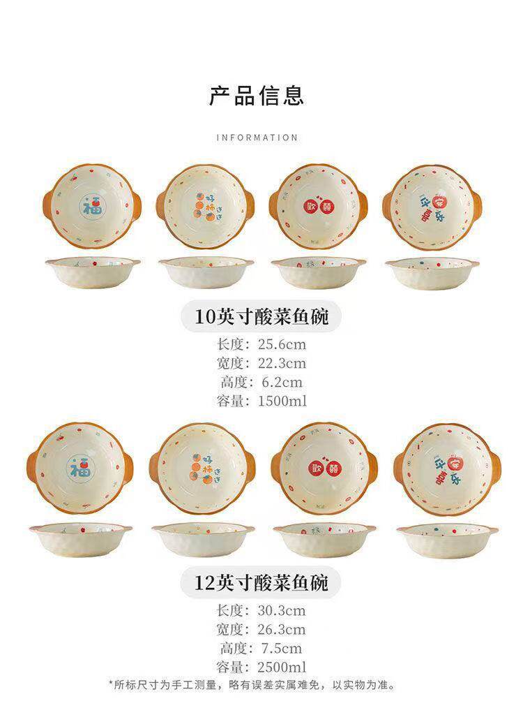 | Color | 10inch double-eared stone pattern soup bowl-ping an fuguo 24 pieces per box,10inch double-eared stone pattern soup bowl - 24 pieces in a box,10inch double-eared stone pattern soup bowl - everyone is happy, 24 pieces in a box,10inch double-eared stone pattern soup bowl-hao shilian 24 pieces per box,12inch double-eared stone pattern soup bowl-ping an fuguo 16 pieces per box |