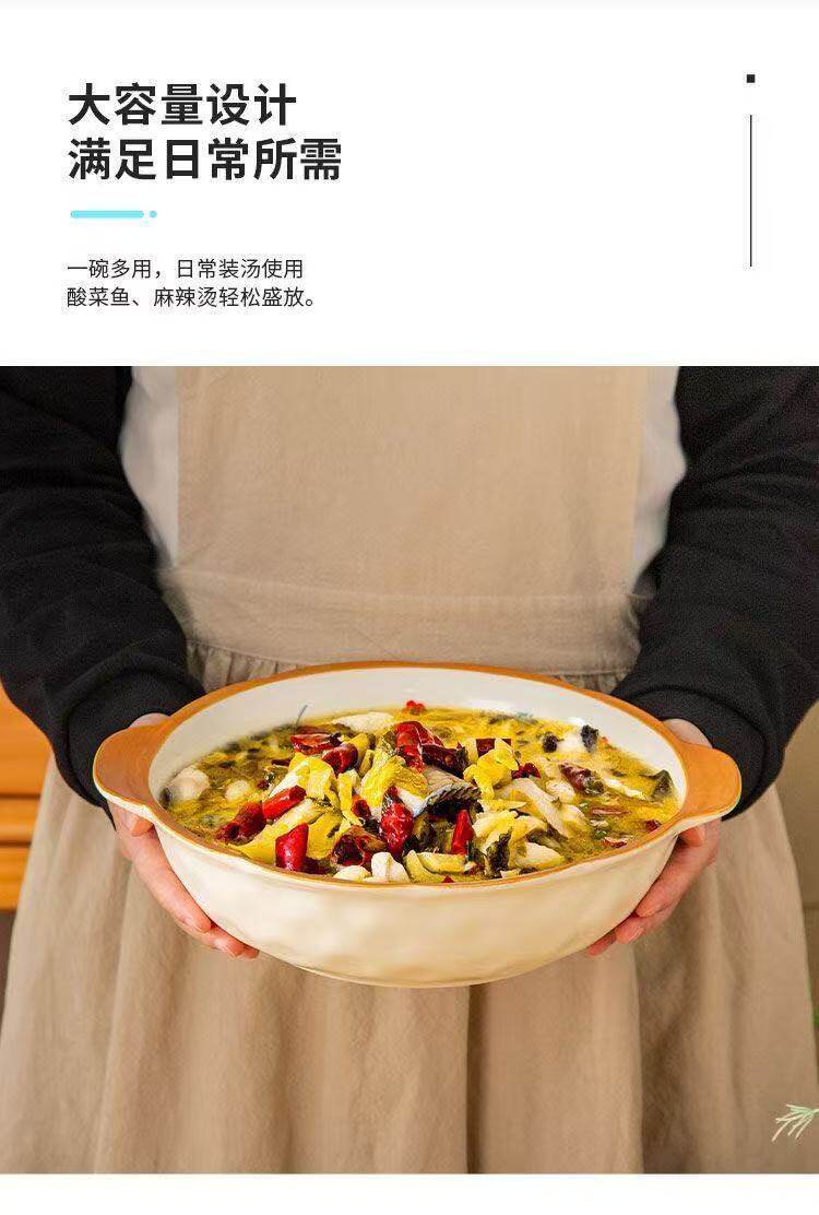 Underglaze Double-Eared Stone-Pattern Soup Bowl for Home Use, Suitable for Maoxuewang (Spicy Beef Soup), Pickled Cabbage Fish, Bowls and Chopsticks, Boiled Meat, Crayfish, Spicy Hot Pot