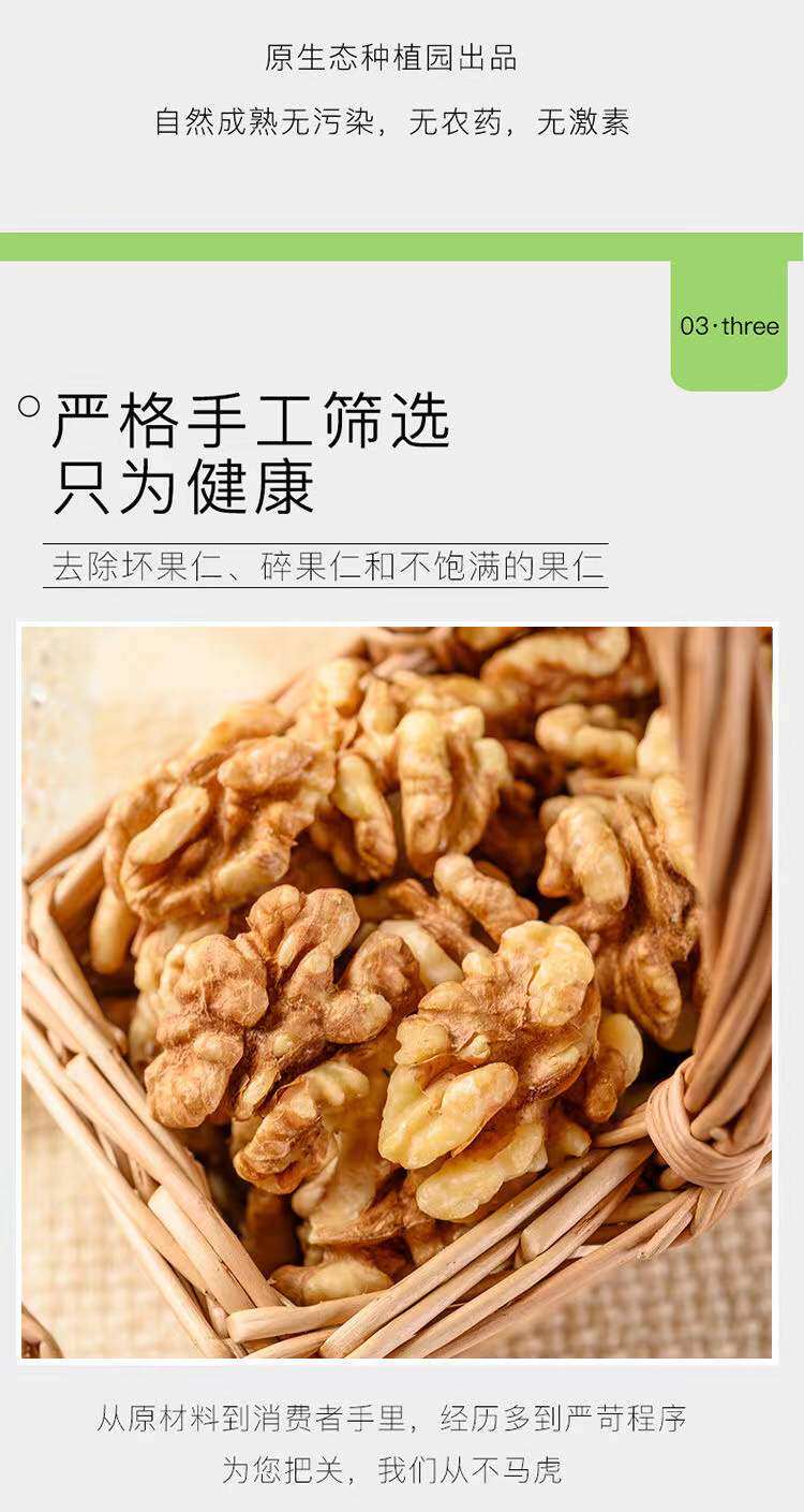 | Taste | [milk-flavored salt and pepper/walnut kernels] net weight 500g × 1 bag [ 0.5kg ],[milk-flavored salt and pepper/walnut kernels] net weight 500g × 2 bags [ 1.0kg ] recommended,[milk-flavored pepper salt/walnut kernels] net weight 500g × 4 bags [ 2kg ] super cost-effective,[raw/walnut kernels] net weight 500g × 1 bag [0.5kg ],[raw/walnut kernels] net weight 500g × 2 bags [ 1.0kg ] recommended,[raw/walnut kernels] net weight 500g × 4 bags [ 2kg ] super cost-effective |