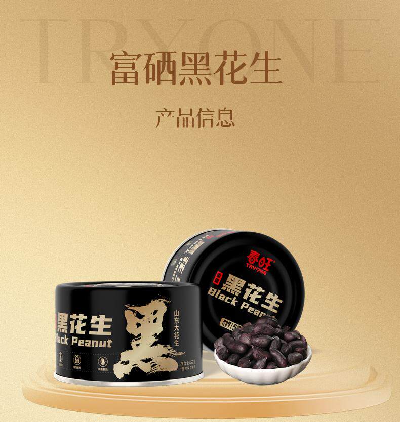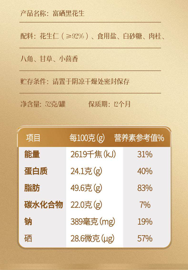 | Packaging specifications | Selenium-rich black peanuts 52g*6 cans,52g*10 cans,52g*20 cans |