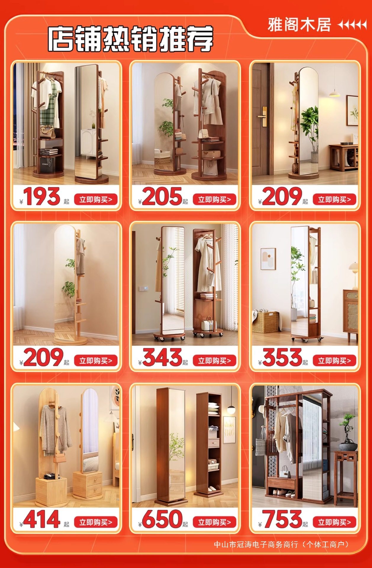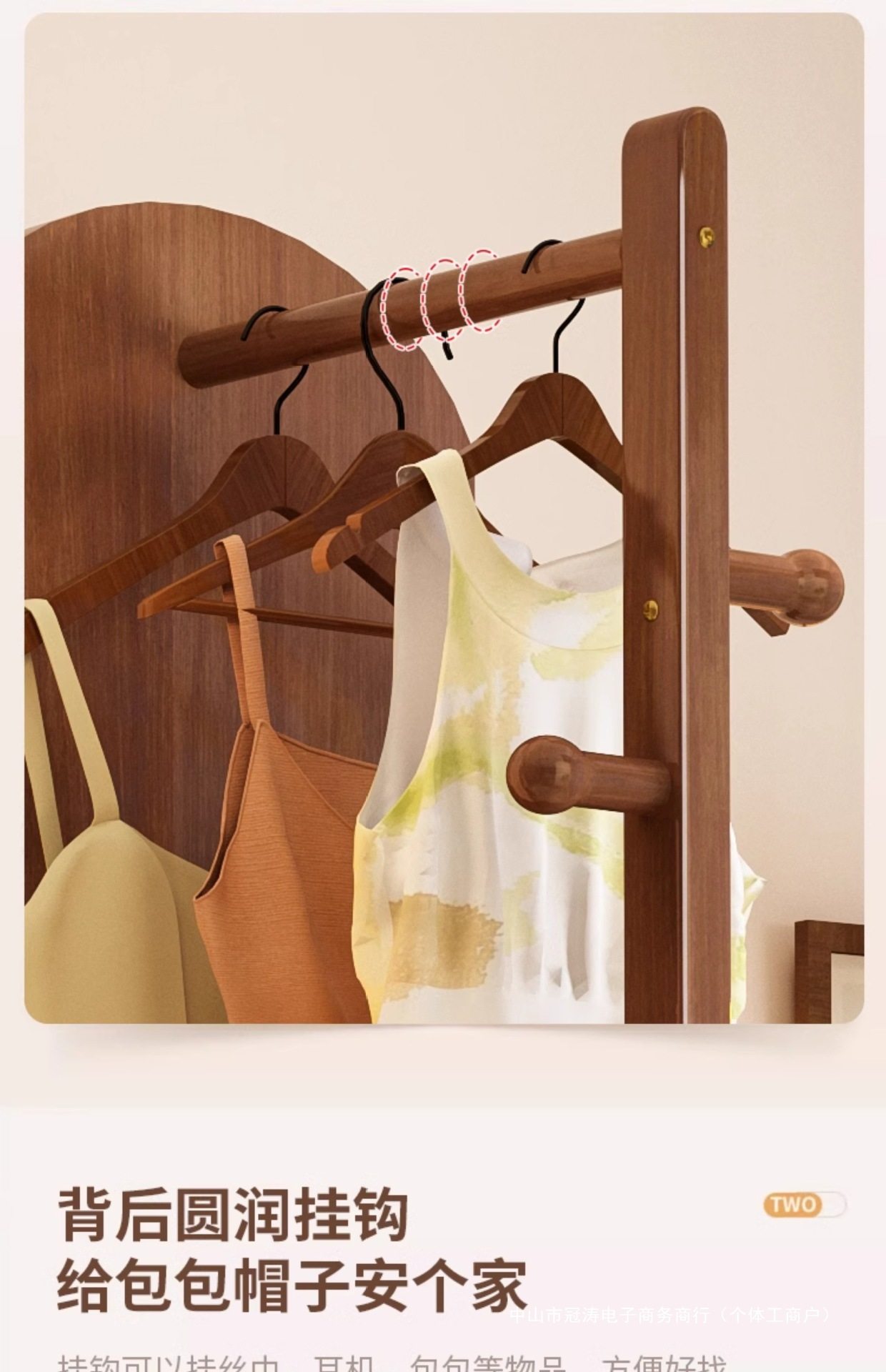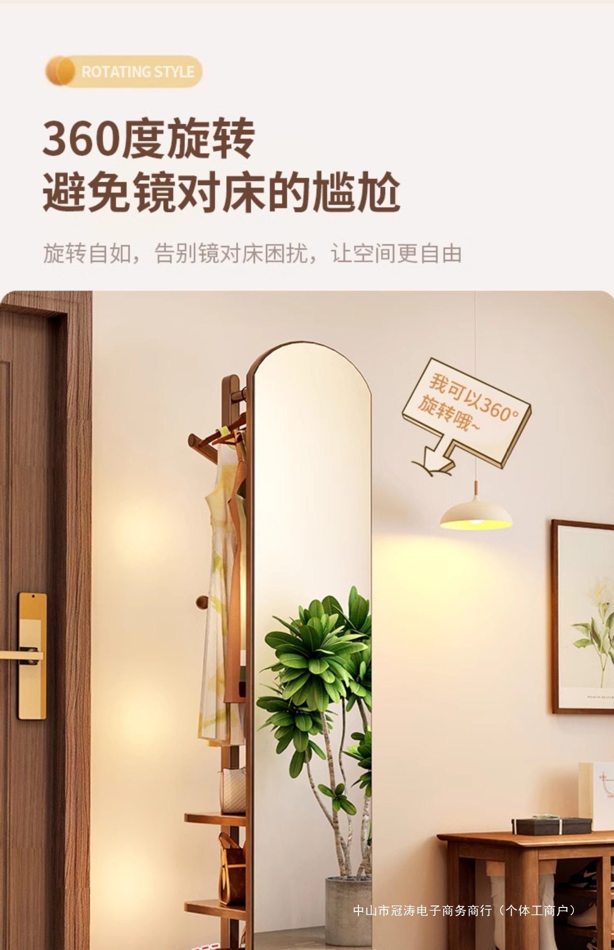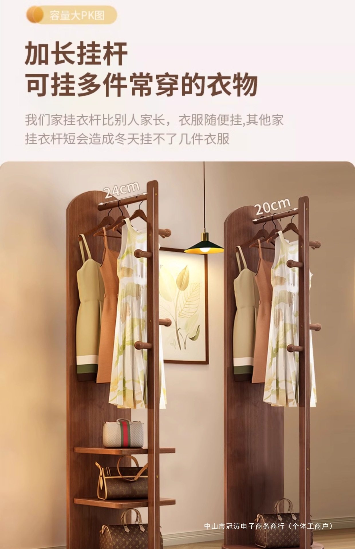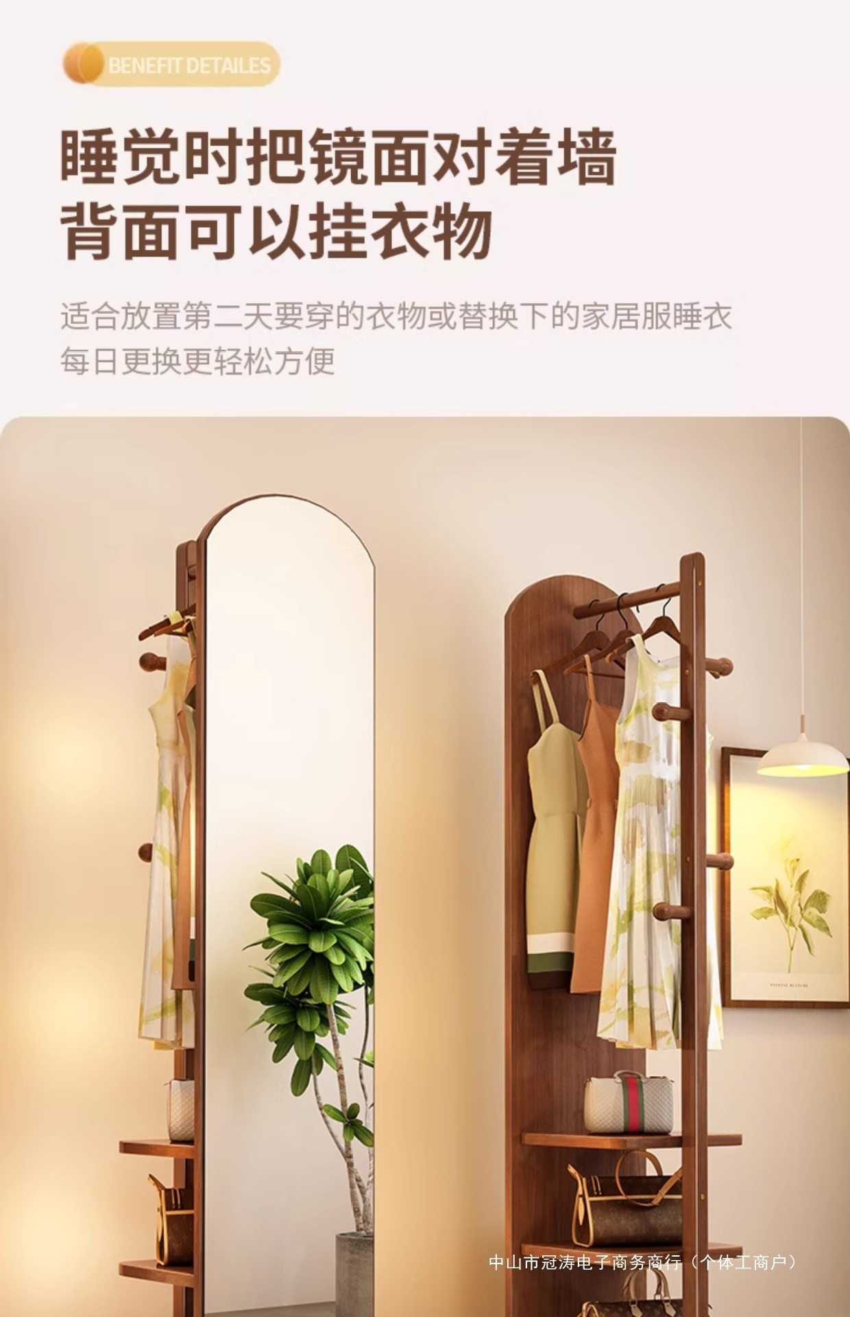Solid Wood Clothes Hanger Bedroom Floor-Standing Coat Rack with Mirror Integrated Living Room Home Removable Multi-Functional Storage Rack