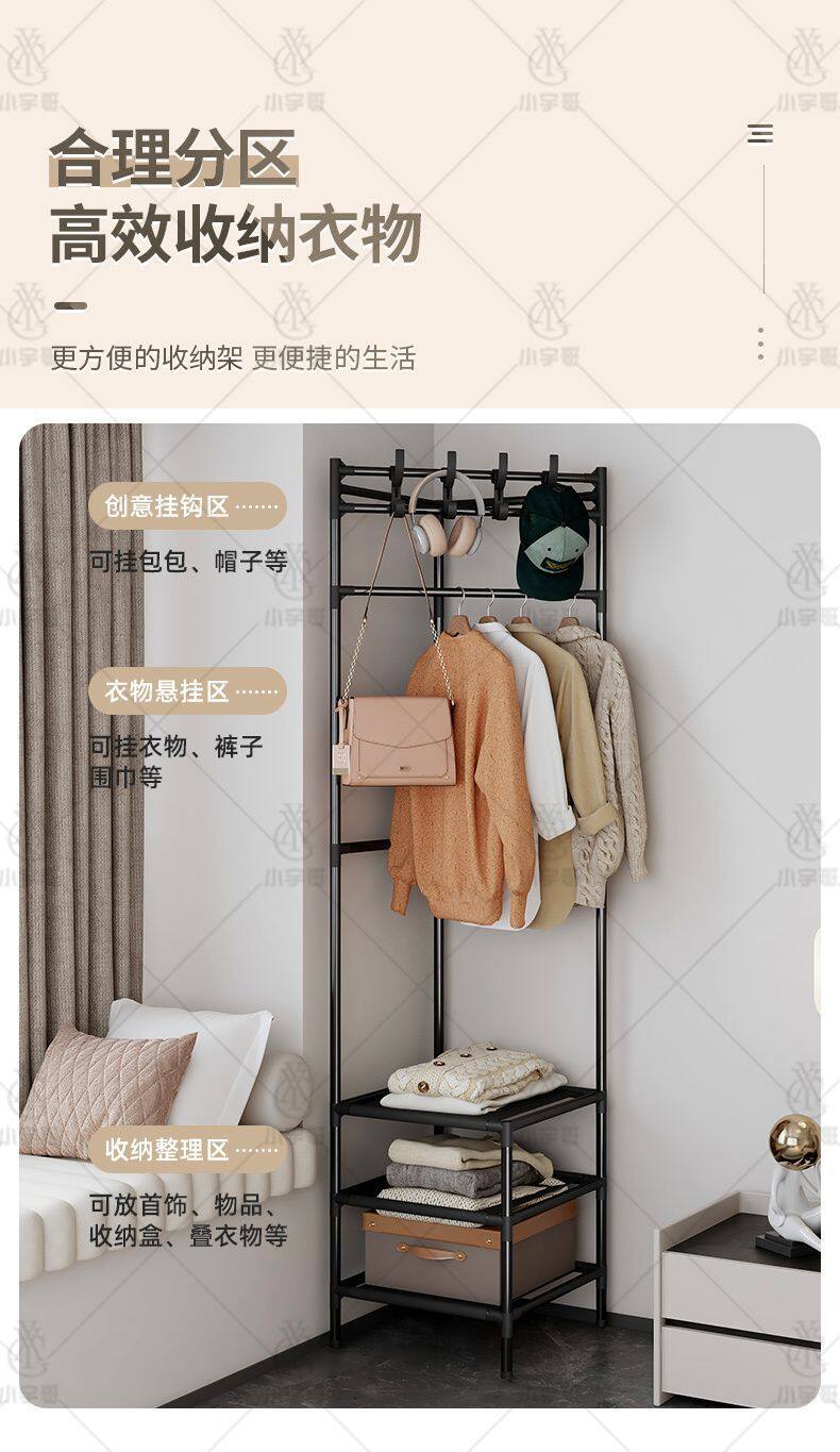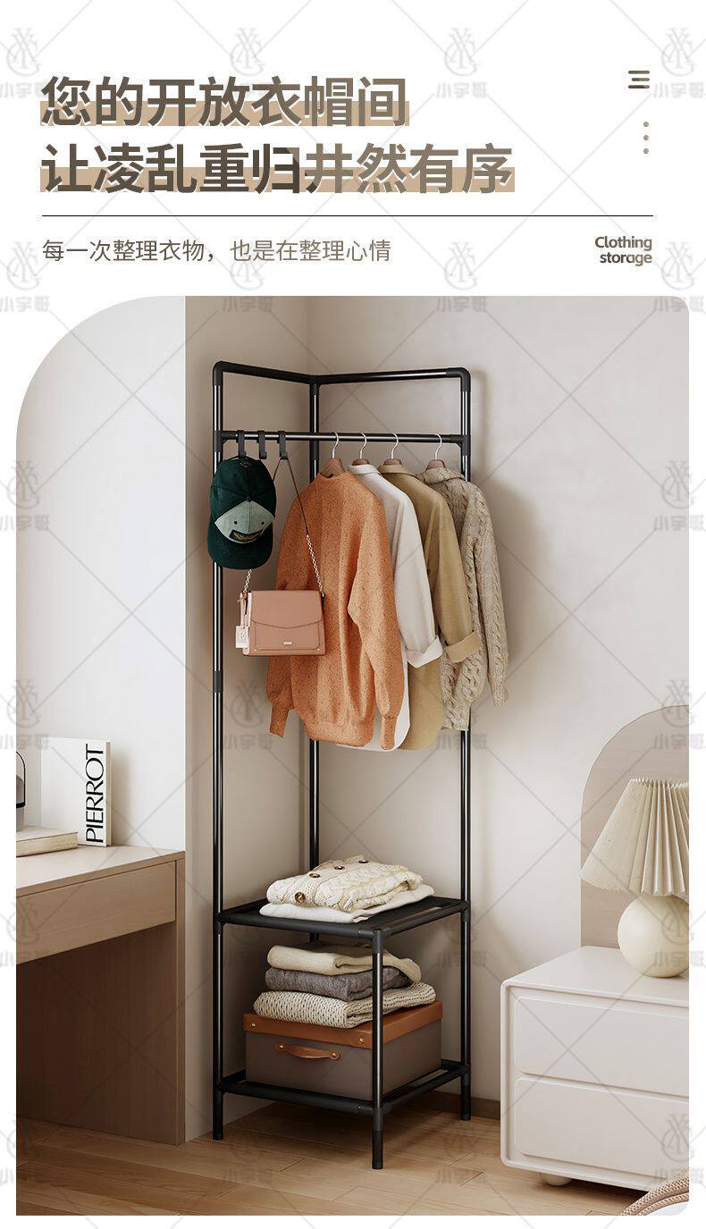 Corner Simple Coat Rack Bedside Floor-Standing Clothes Hanger Small Apartment Home Storage Bedroom Storage Rack Shelf