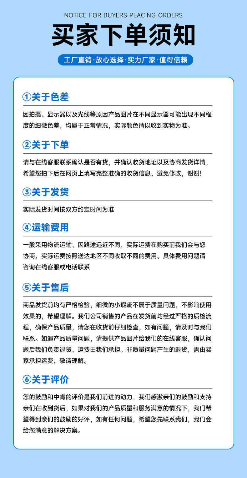 | Quality inspection report number | Consult customer service |