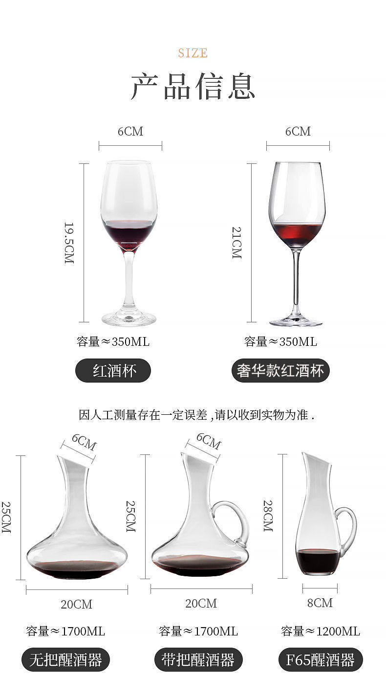 | Color | 1 350ml red wine glass trial pack★,G5 multifunctional cup holder (can hold decanter or red wine)★,6 350ml wine glasses + g5 cup holder★,(luxury model) 6 goblets + g5 cup holder★,6 cups + decanter with handle + g5 cup holder and bottle opener★,6 cups + handleless decanter + g5 cup holder with bottle opener★,4 350ml red wine glasses★,6 350ml red wine glasses★,6 cups 350ml + decanter with handle + bottle opener★,6 cups 350ml + handleless decanter + bottle opener★,6 pieces of 350ml + decanter with handle + g5 cup holder★,6 pieces of 350ml + handleless decanter + g5 cup holder★,(luxury model) 2 350ml goblets★,(luxury model) 6 350ml goblets★,2 luxury models + decanter with handle★,2 luxury models + slanted decanter★,6 luxury models + decanter with handle★,6 luxury models + inclined decanter★,2 350ml wine glasses + decanter with handle★,4 350ml wine glasses + decanter with handle★,6 350ml wine glasses + decanter with handle★,2 350ml wine glasses + decanter without handle★,4 350ml wine glasses + decanter without handle ★,6 350ml wine glasses + decanter without handle★,U-shaped decanter★,Bring a decanter★,Without a decanter★,Decanter with handle + 6 luxury red wine glasses★ |
