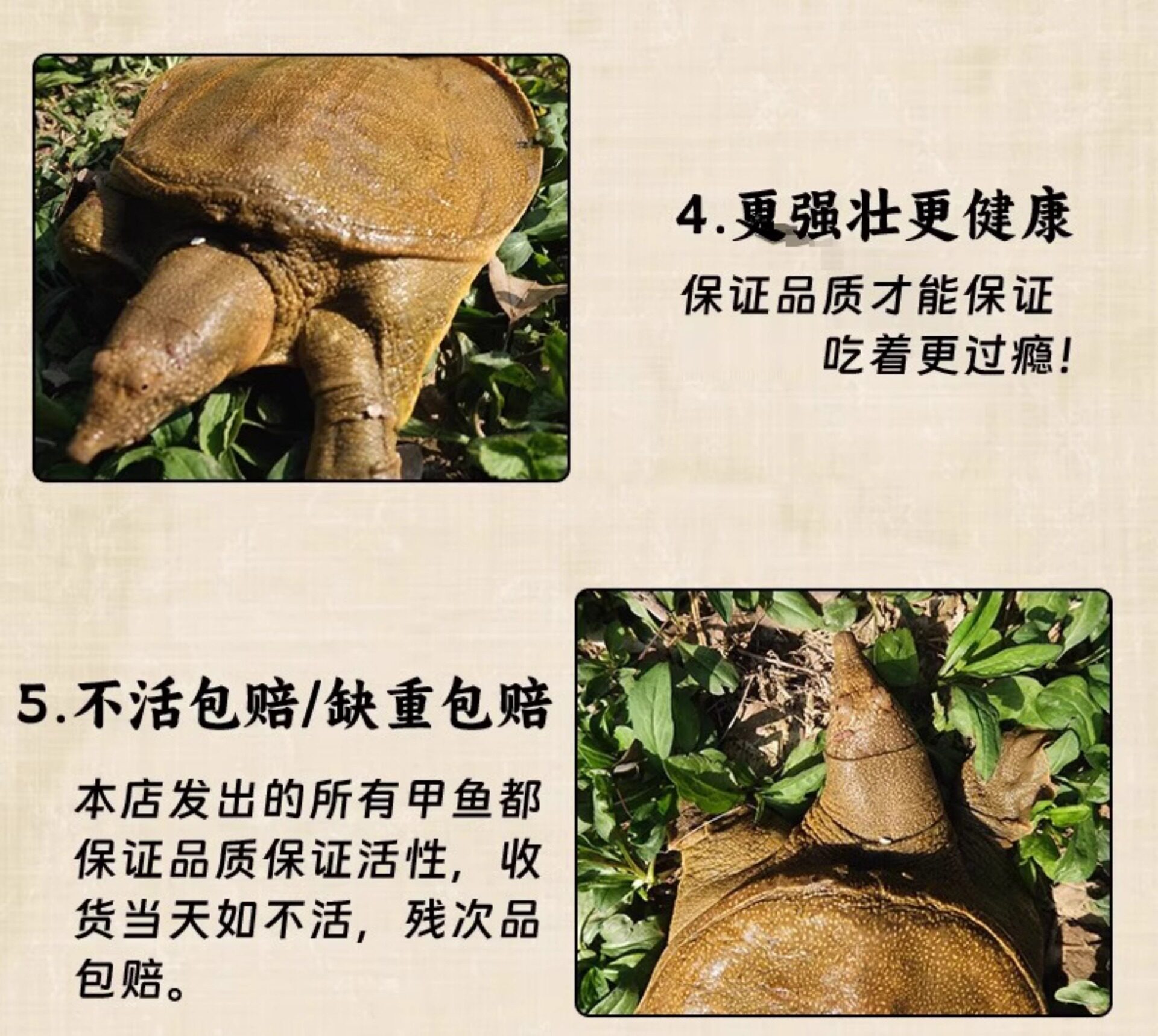| Packaging specifications | §1g- 0.7-0.95kg years of ecological wild-raised green and yellow old turtles (delivery of full catties, no weight compensation) ⚑ ⚑,§1g- 0.8-1.1kg years of ecological wild-raised green and yellow old turtles (delivery of full catties, no weight compensation) ⚑ ⚑,§1g- 0.9-1.2kg years of ecological wild-raised green and yellow old turtles (delivery of full catties, no weight compensation) ⚑ ⚑,§1g- 1.0-1.3kg years of ecological wild-raised green and yellow old turtles (delivery of full catties, no weight compensation) ⚑ ⚑,§1g- 1.1-1.4kg years of ecological wild-raised green and yellow old turtles (delivery of full catties, no weight compensation) ⚑ ⚑,§1g- 1.2-1.6kg years of ecological wild-raised green and yellow old turtles (delivery of full catties, no weight compensation) ⚑ ⚑,§1g- 1.4-1.7kg years of ecological wild-raised green and yellow old turtles (delivery of full catties, no weight compensation) ⚑ ⚑,§1g- 1.5-1.9kg years of ecological wild-raised green and yellow old turtles (delivery of full catties, no weight compensation) ⚑ ⚑,§1g- 1.6-2kg years of ecological wild-raised green and yellow old turtles (delivery of full catties, no weight compensation) ⚑ ⚑,§1g-[public] 0.7-0.95kg years old ecologically wild-raised green and yellow male turtle (delivered in full pounds, no weight compensation) ⚑ ⚑,§1g-[public] 0.8-1.1kg years old ecologically wild-raised green and yellow male turtle (delivered in full pounds, no weight compensation) ⚑ ⚑,§1g-[public] 0.9-1.2kg years old ecologically wild-raised green and yellow male turtle (delivered in full pounds, no weight compensation) ⚑ ⚑,§1g-[public] 1.0-1.3kg years old ecologically wild-raised green and yellow male turtle (delivered in full pounds, no weight compensation) ⚑ ⚑,§1g-[public] 1.1-1.4kg years old ecologically wild-raised green and yellow male turtle (delivered in full pounds, no weight compensation) ⚑ ⚑,§1g-[public] 1.2-1.6kg years old ecologically wild-raised green and yellow male turtle (delivered in full pounds, no weight compensation) ⚑ ⚑,§1g-[public] 1.4-1.7kg years old ecologically wild-raised green and yellow male turtle (delivered in full pounds, no weight compensation) ⚑ ⚑,§1g-[public] 1.5-1.9kg years old ecologically wild-raised green and yellow male turtle (delivered in full pounds, no weight compensation) ⚑ ⚑,§1g-[public] 1.6-2kg years old ecologically wild-raised green and yellow male turtle (delivered in full pounds, no weight compensation) ⚑ ⚑,§1g-[public] 1.8-2.1kg years old ecologically wild-raised green and yellow male turtle (delivered in full pounds, no weight compensation) ⚑ ⚑,§1g-[public] 1.9-2.2kg years old ecologically wild-raised green and yellow male turtle (delivered in full pounds, no weight compensation) ⚑ ⚑,§1g-[public] 2-2.4kg years old ecologically wild-raised green and yellow male turtle (delivered in full pounds, no weight compensation) ⚑ ⚑,§1g-[public] 2.2-2.6kg years old ecologically wild-raised green and yellow male turtle (delivered in full pounds, no weight compensation) ⚑ ⚑,§1g-[public] 2.5-2.9kg years old ecologically wild-raised green and yellow male turtle (delivered in full pounds, no weight compensation) ⚑ ⚑,§1g-[public] 2.8-3.1kg years old ecologically wild-raised green and yellow male turtle (delivered in full pounds, no weight compensation) ⚑ ⚑ |