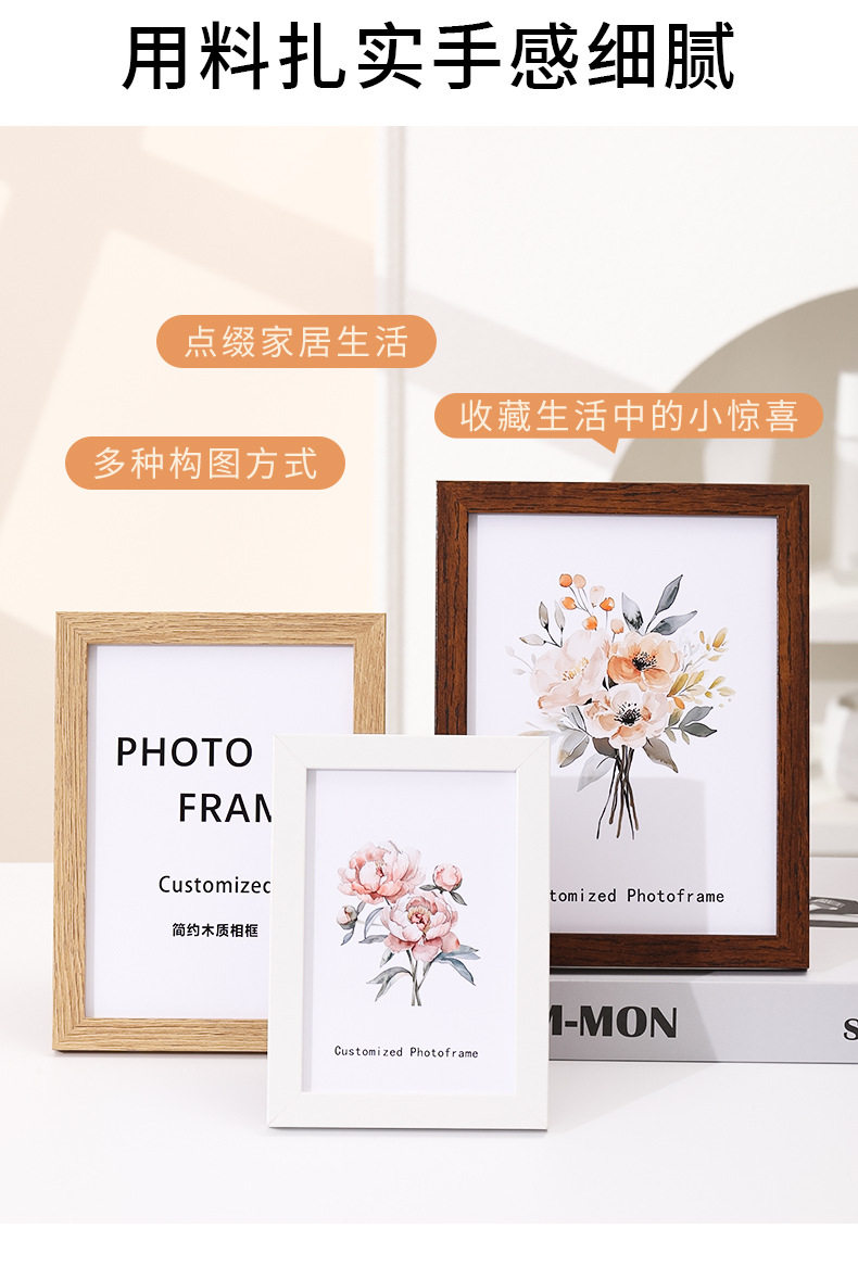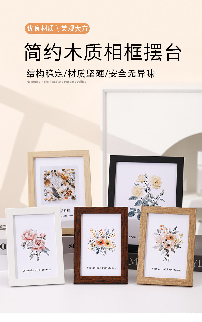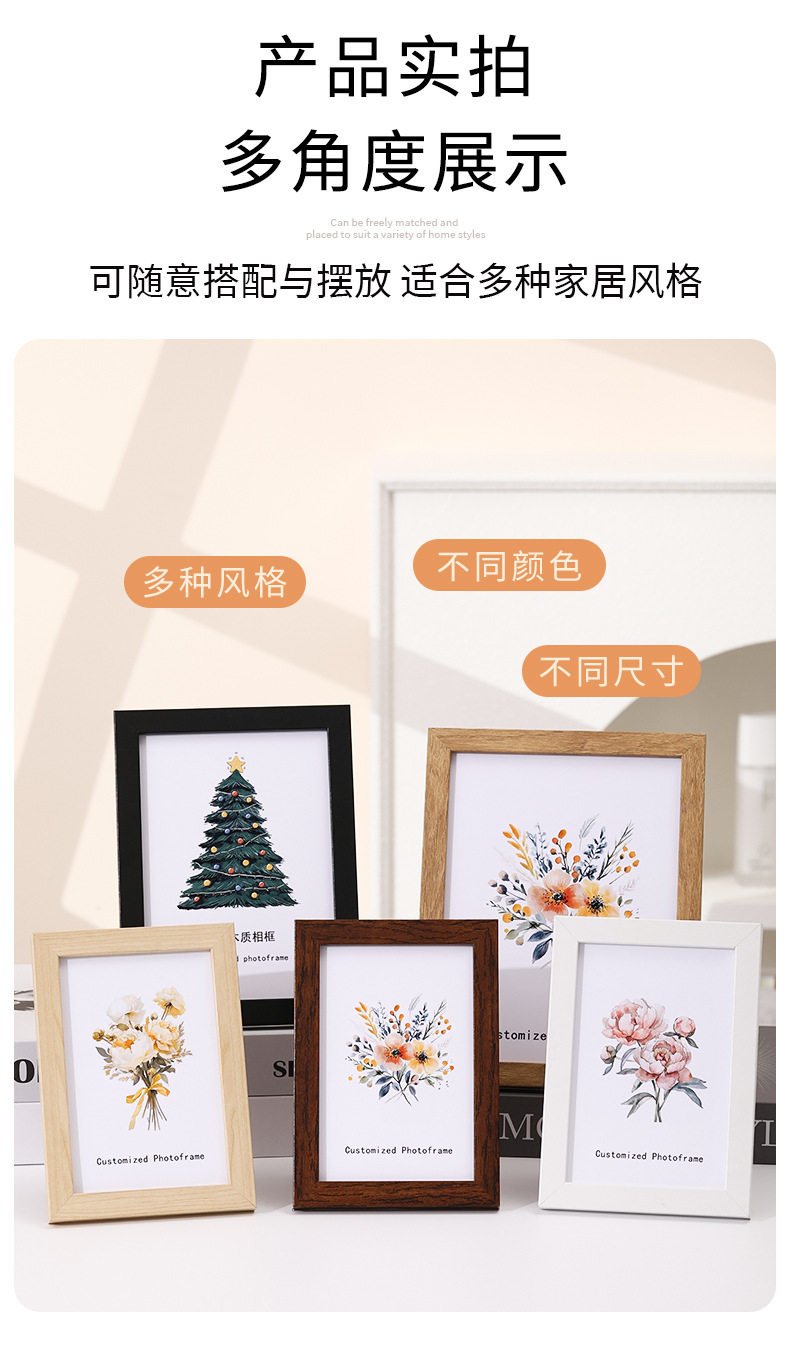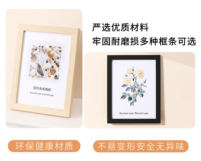 Wooden 6inch Photo Frame Display A4 Photo Frame 8inch 10inch Simple Photo Wall Empty Frame Picture Frame Wall Hanging Wholesale Customization