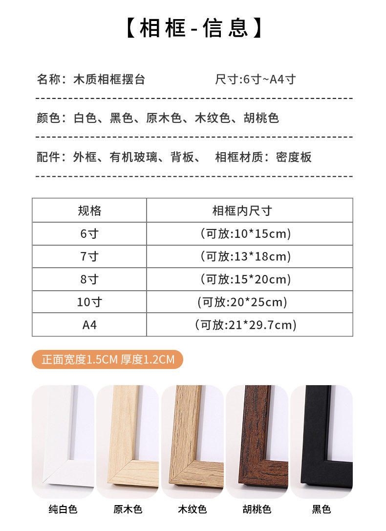 Inner frame size Wood color,Wood grain color,Walnut color,White,black