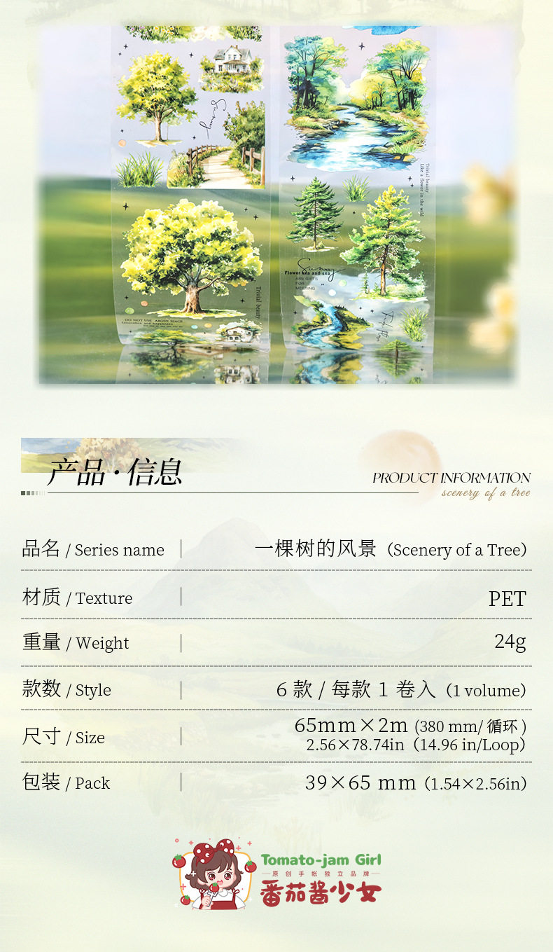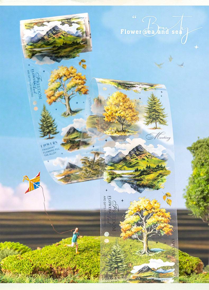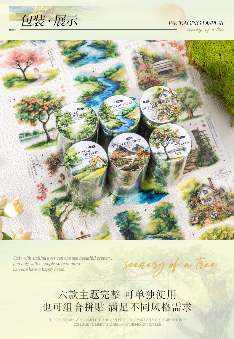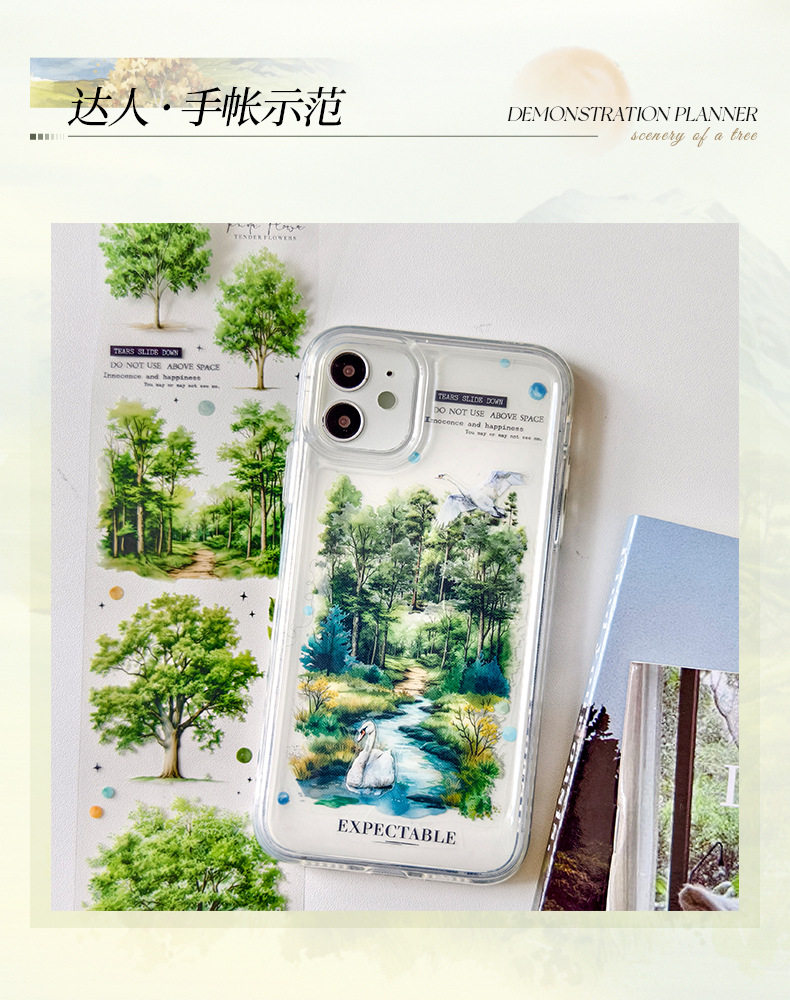 Ketchup Plant Landscaping Pet Tape, a Tree's Scenery, Small Fresh Material, Kidsren's Handbook DIY Collage