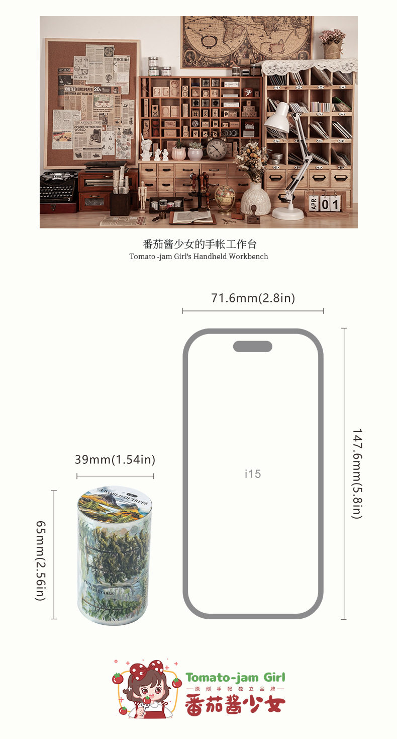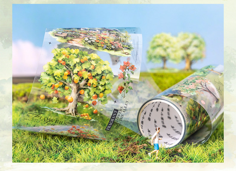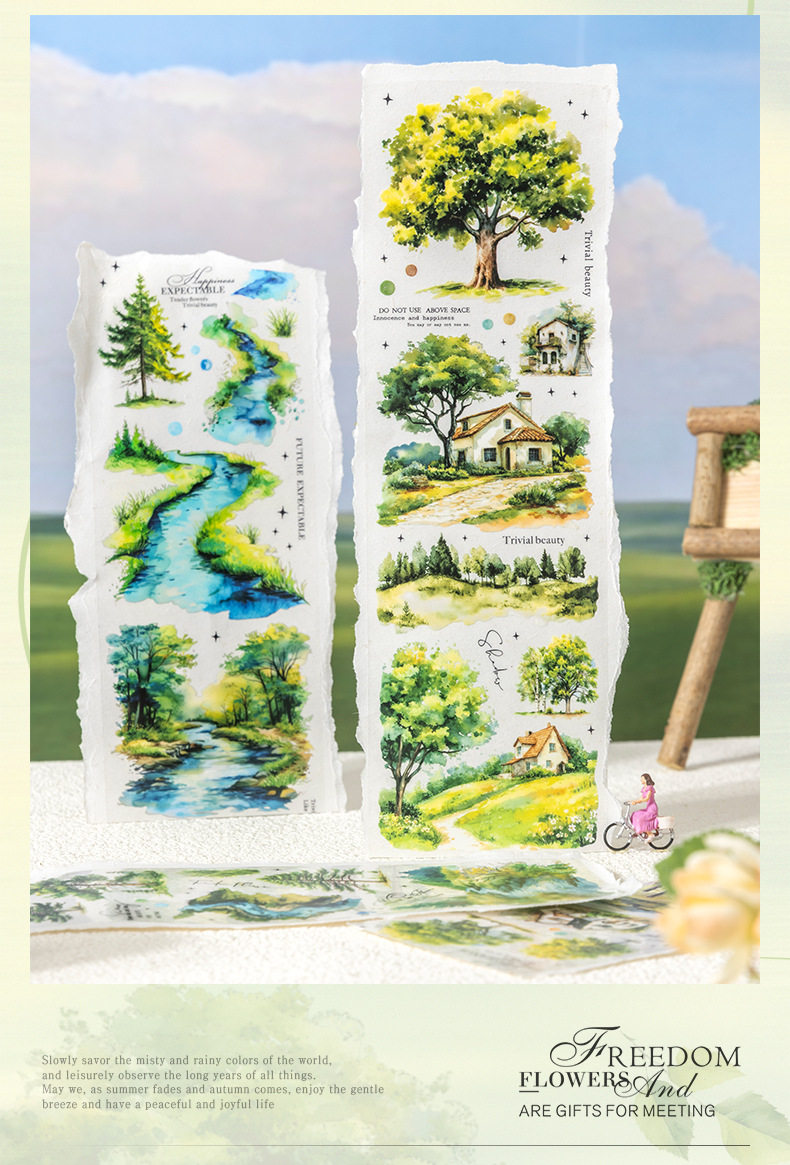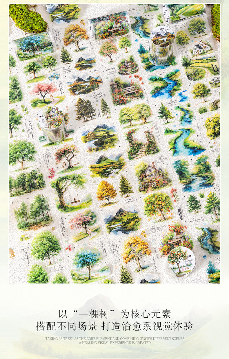 Ketchup Plant Landscaping Pet Tape, a Tree's Scenery, Small Fresh Material, Kidsren's Handbook DIY Collage