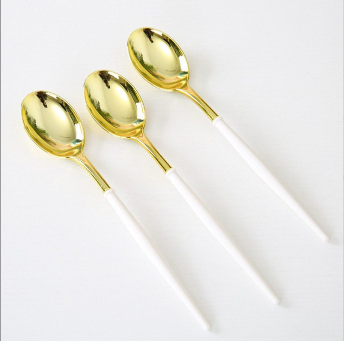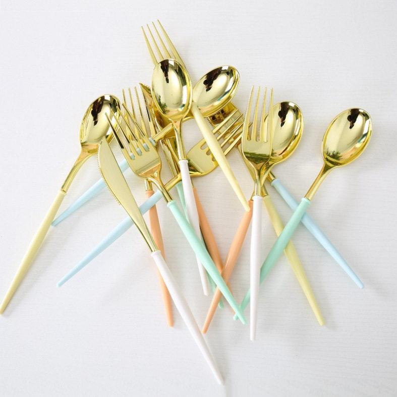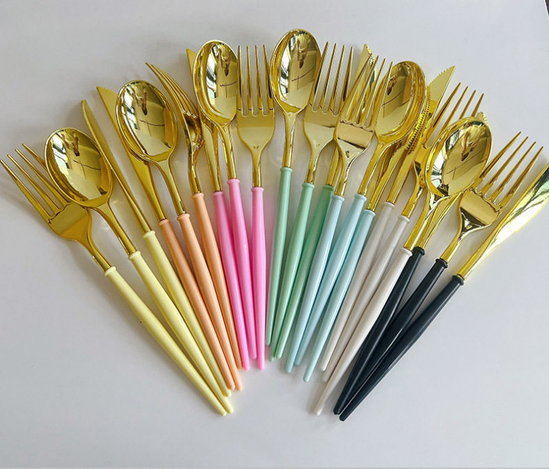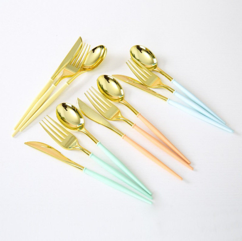 Cross-Border Disposable Cutlery, Forks and Spoons, Colorful Electroplated Disposable Tableware Sets, Birthday Party Western Food Special Cutlery, Forks and Spoons
