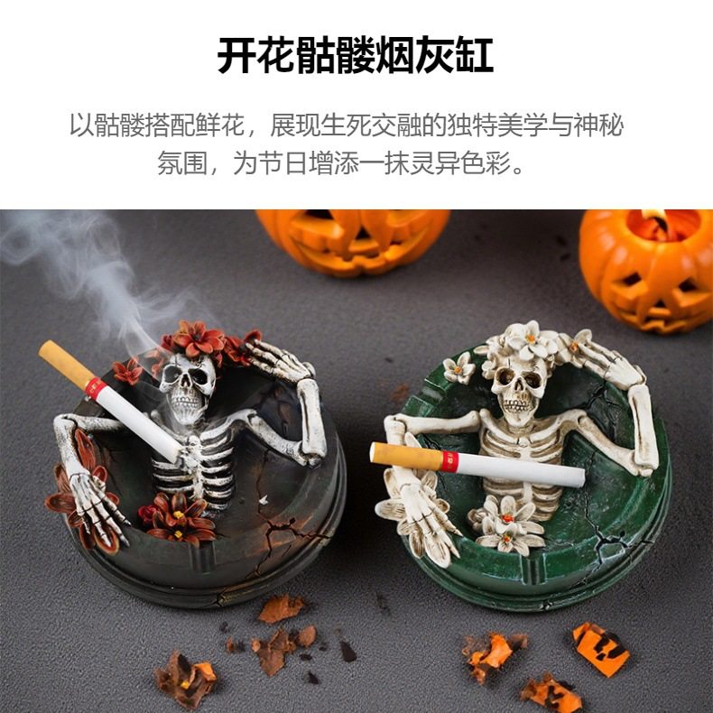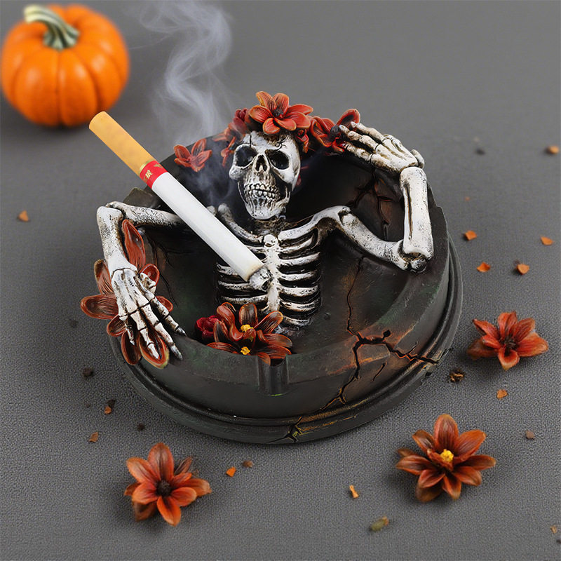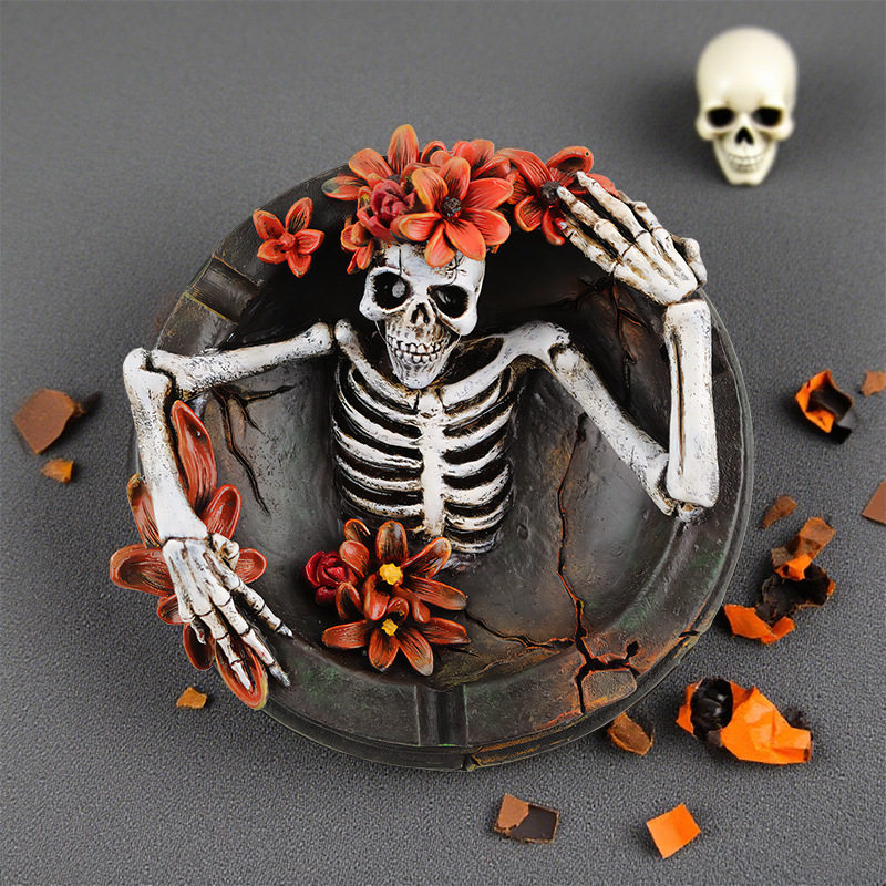Personalized Halloween Flower Skull Ashtray, Trendy and Cool Gift for Boys, Resin Desktop Ornament, Home Decoration