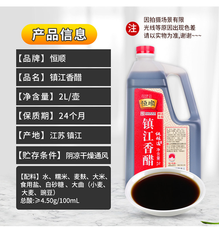 Hengshun Zhenjiang Balsamic Vinegar 2L Catering Kitchen Brewed Vinegar Household Cold Dumpling Vinegar Edible Vinegar Seasoning