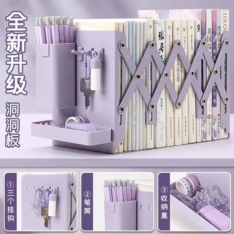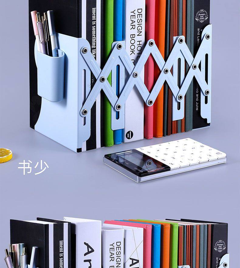 Retractable Book Stand Student Korean Style Book Stand Simple and Cute Bookend High School Student Desk Storage Metal Bookshelf