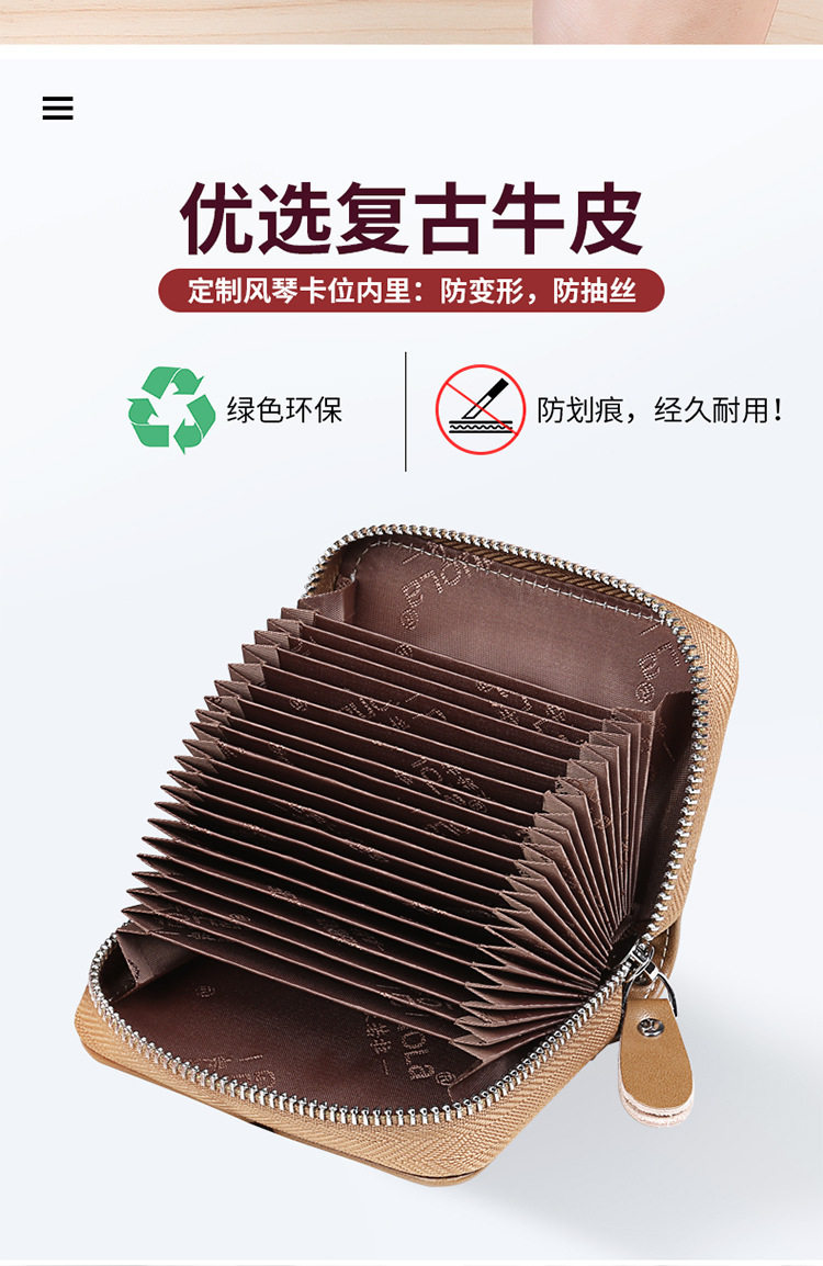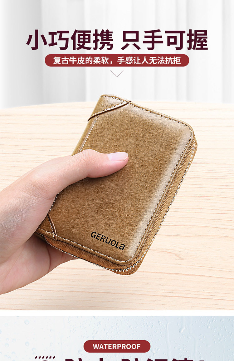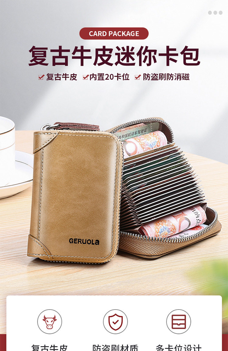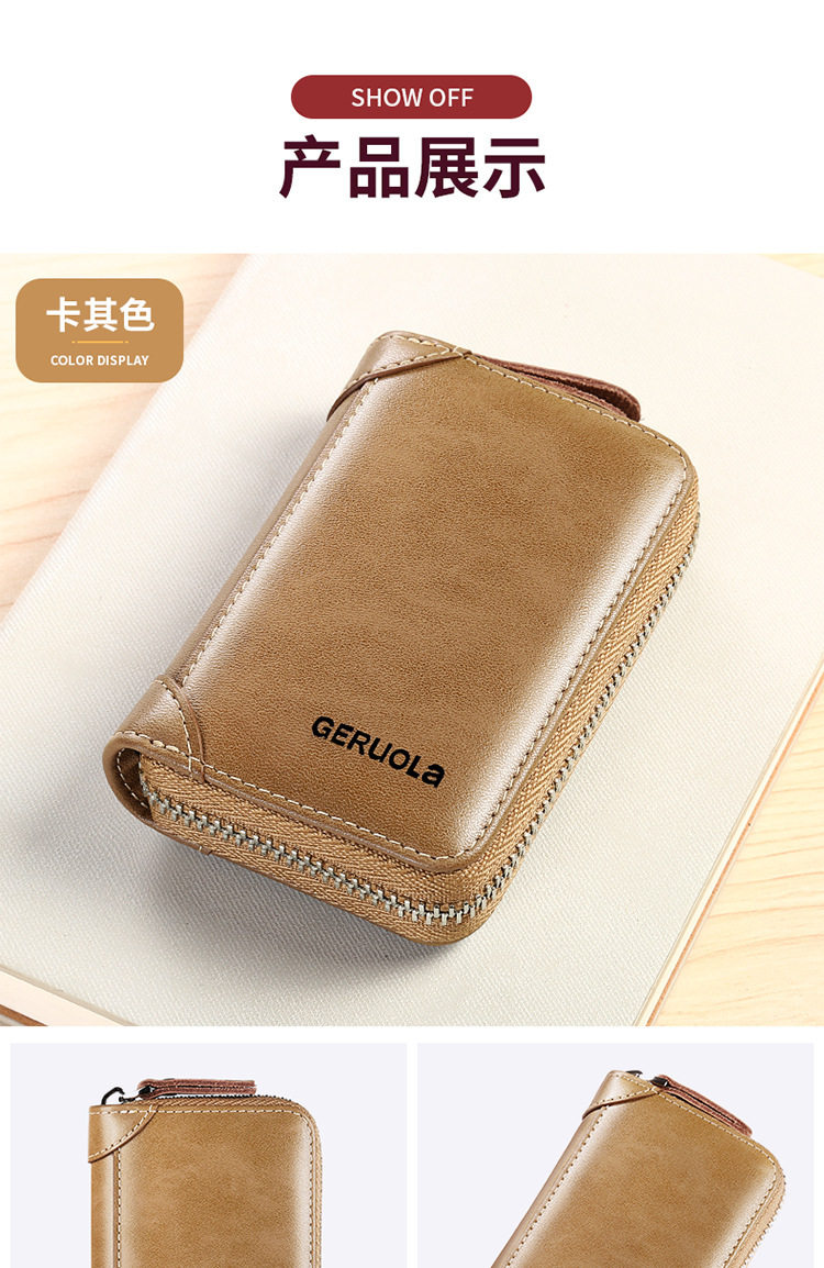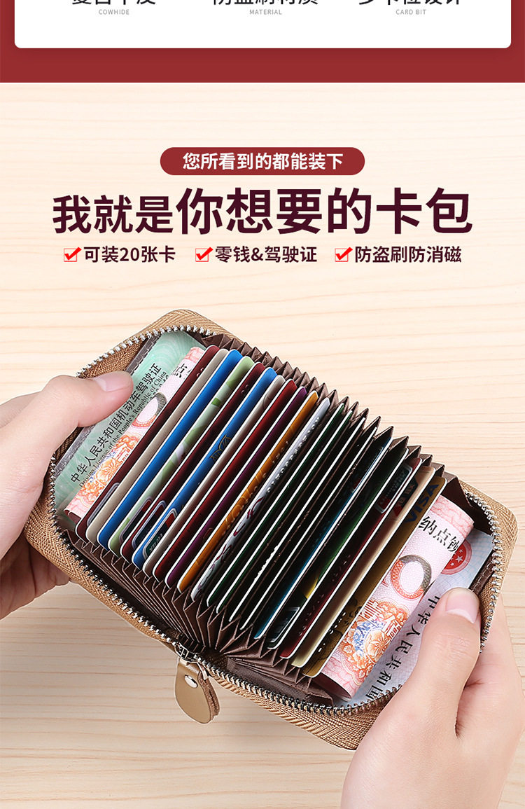 Guangzhou Leather Factory Card Holder Men's Genuine Leather Multi-Card Slot Anti-Degaussing Zipper Small Card Holder Ultra-Thin Driver's License Cover Men