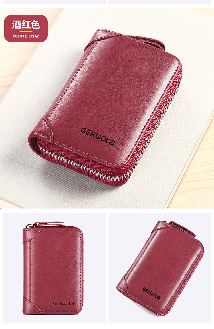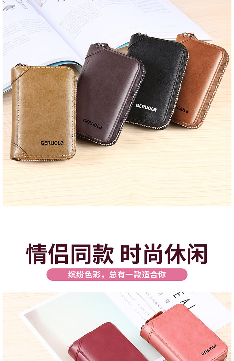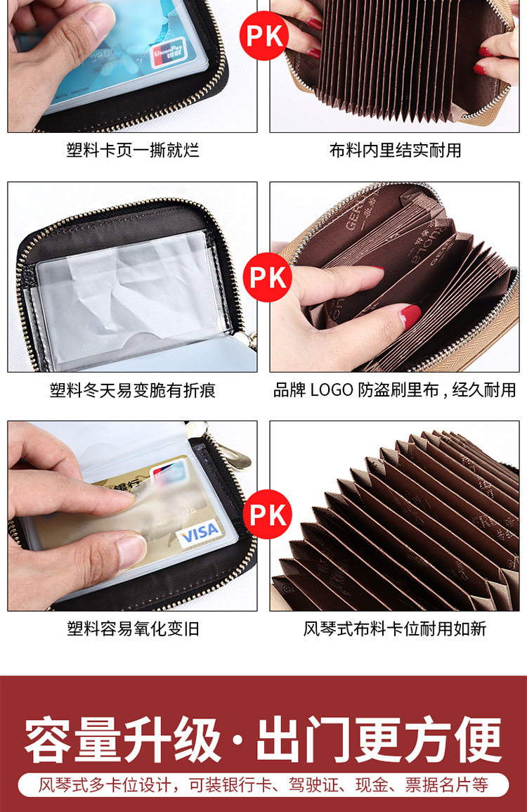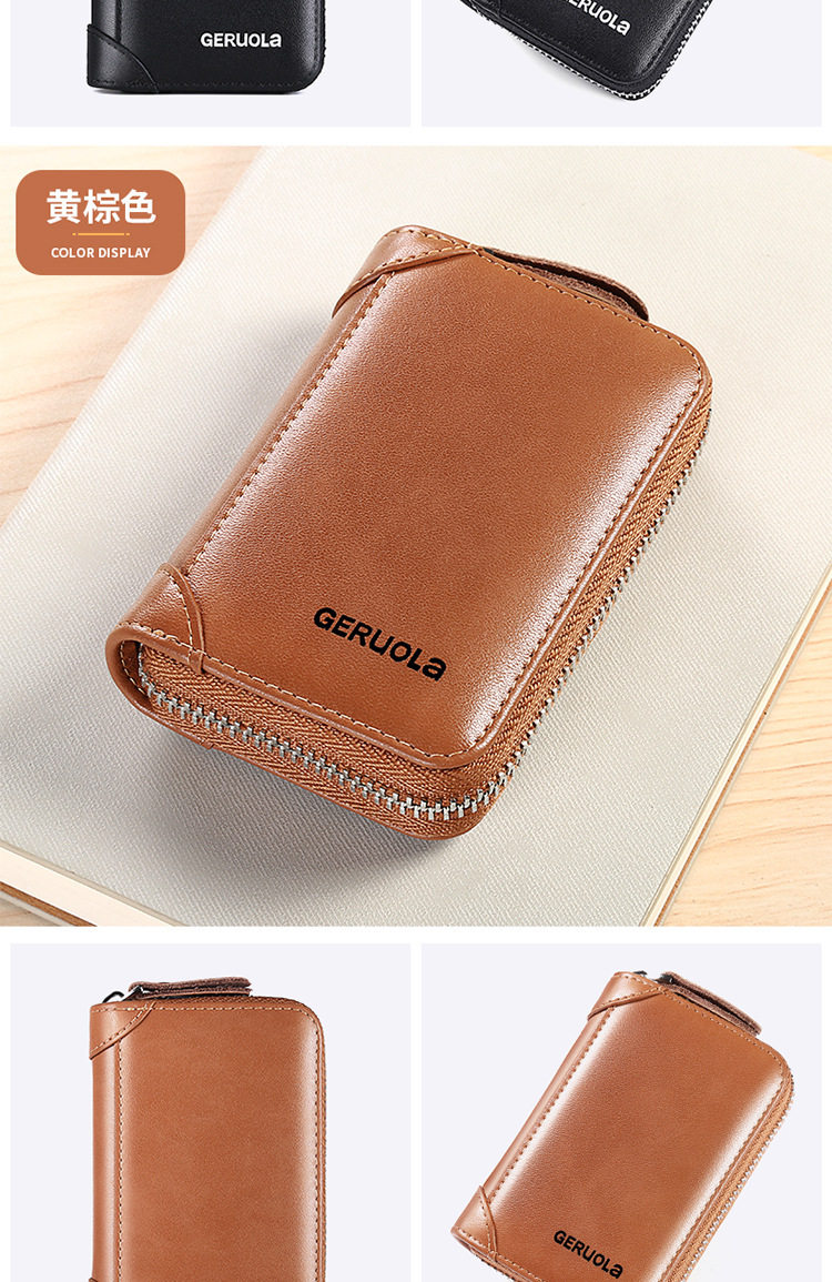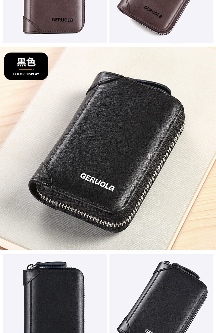 Guangzhou Leather Factory Card Holder Men's Genuine Leather Multi-Card Slot Anti-Degaussing Zipper Small Card Holder Ultra-Thin Driver's License Cover Men