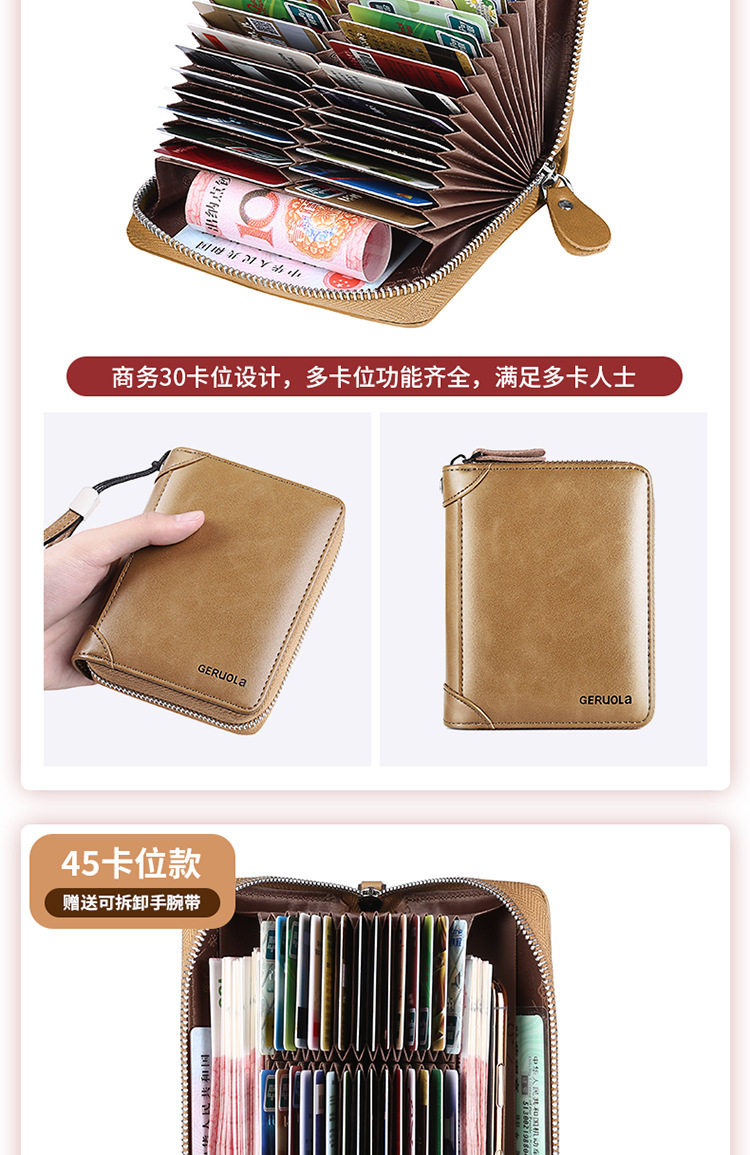 | Color | Khaki 12 card slots,Khaki 20 card slots,Dark brown 12 card slots,Dark brown 20 card slots,Yellow brown 12 card slots,Yellow brown 20 card slots,Black 12 card slots,Black 20 card slots,Charming purple 12 card slots,Charming purple 20 card slots,Burgundy 12 card slots,Burgundy 20 card slots,Rouge powder 12 card slots,Rouge powder 20 card slots,Dark brown color 30 card slots,Khaki 30 card slots,Yellow brown 30 card slots,Black 30 card slots,Burgundy 30 card slots,Charming purple 30 card slots,Rouge powder 30 card slots,Dark brown 45 card slots,Yellow brown 45 card slots,Charming purple 45 card slots,Burgundy 45 card slots,Rouge powder 45 card slots,Khaki 45 card slots,Black 45 card slots |