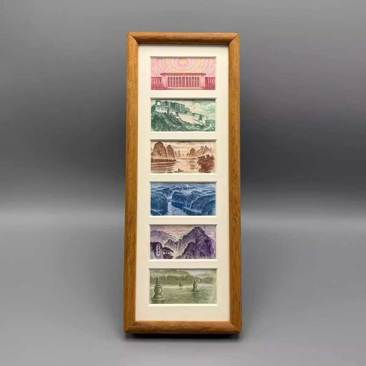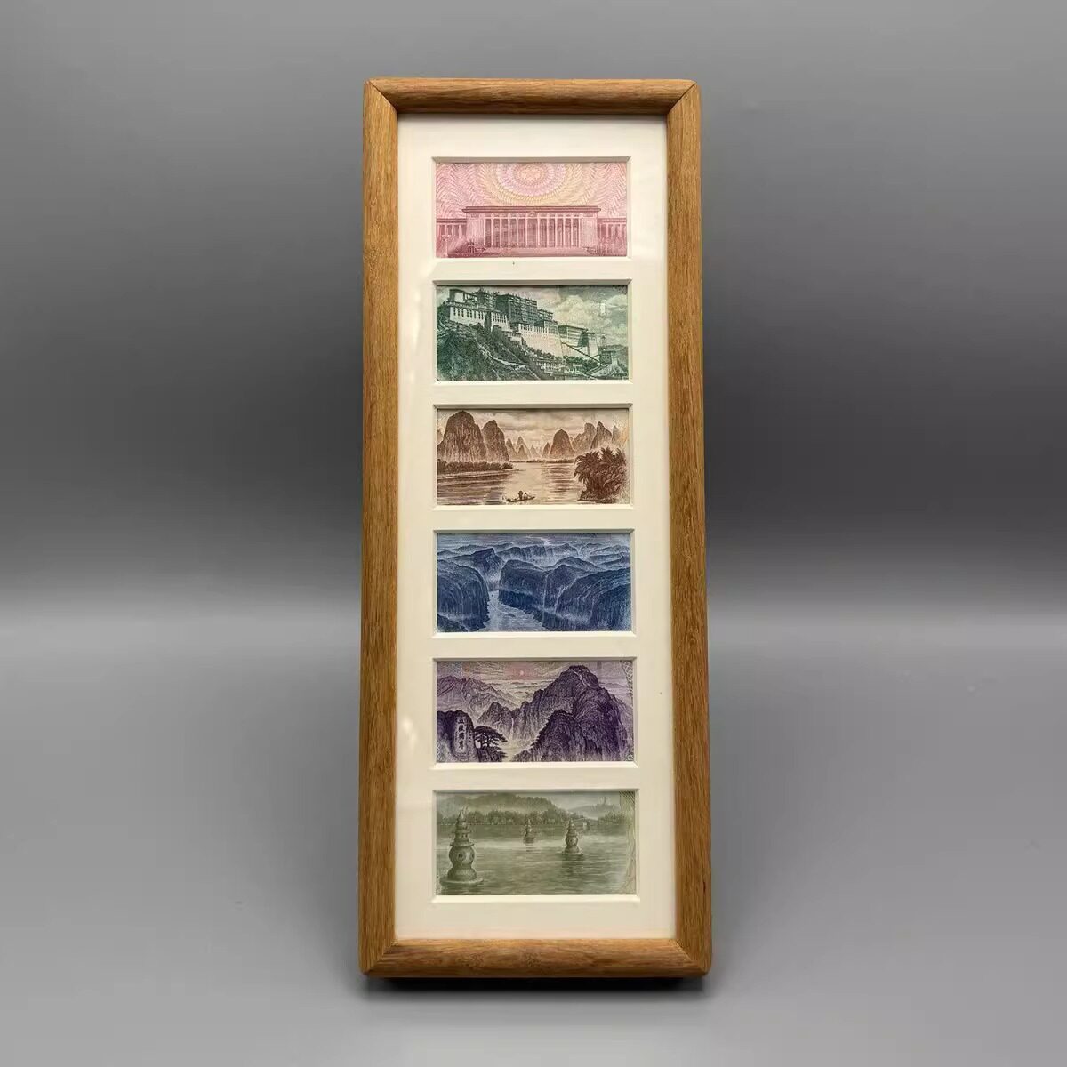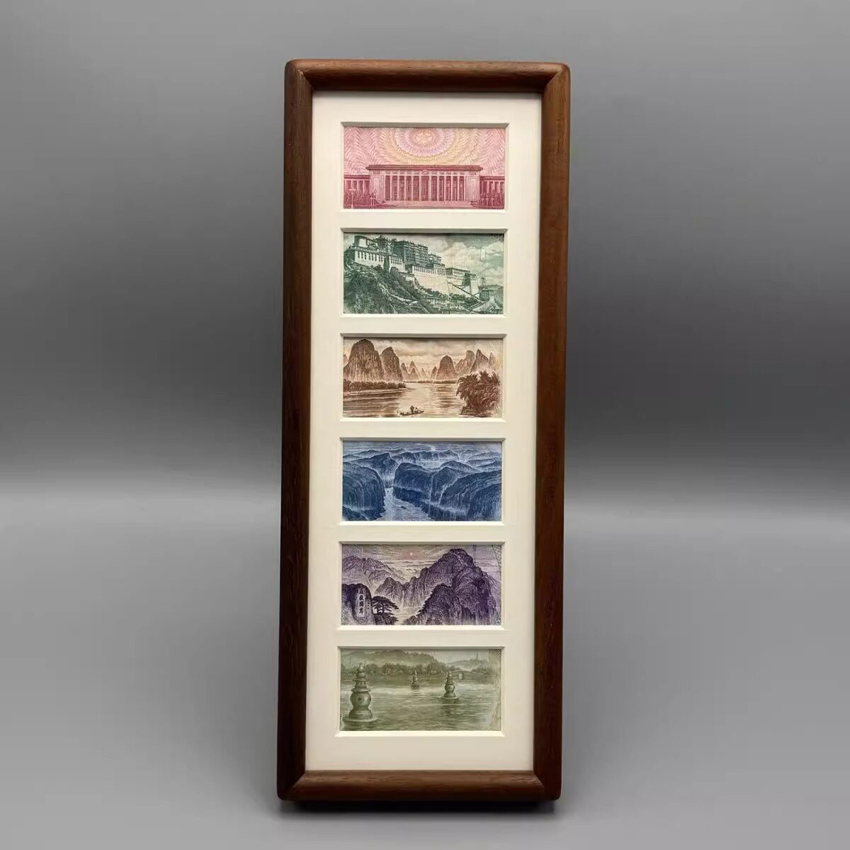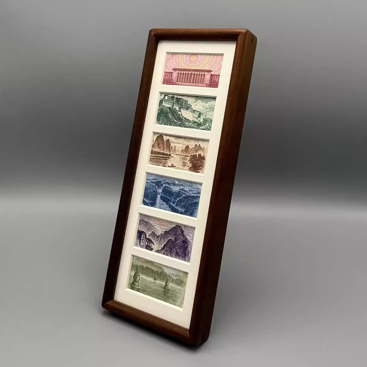 Photo Frame Set of Six Black Walnut Chinese Yuan Fortune-Enhancing Gold Picture Frame Display Decoration Set of Six Photo Frames Beautiful Scenery