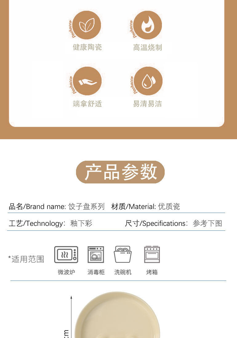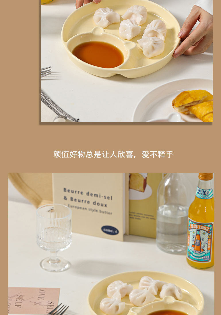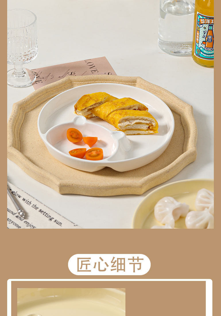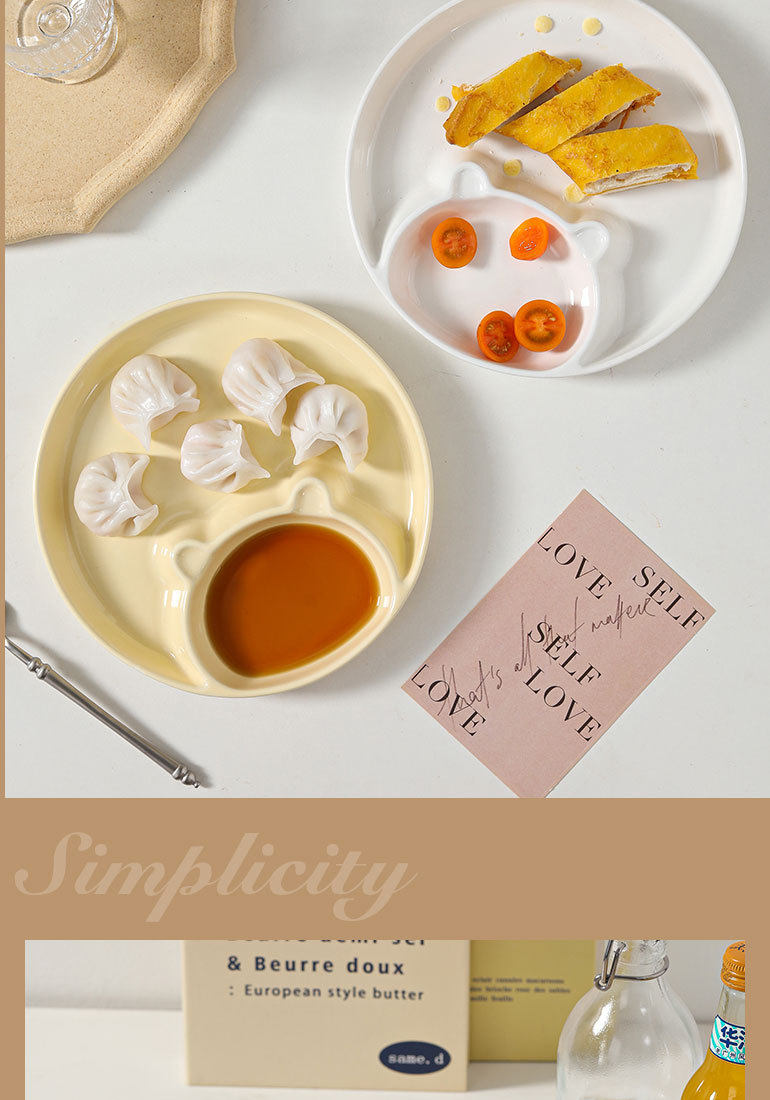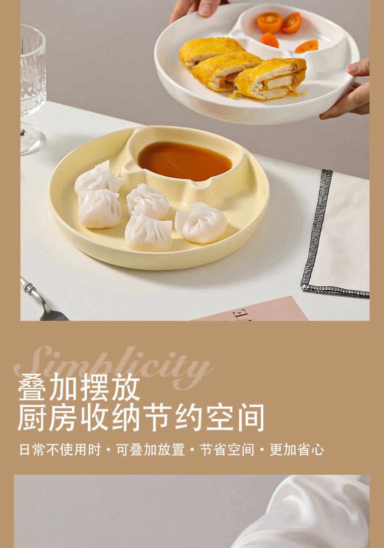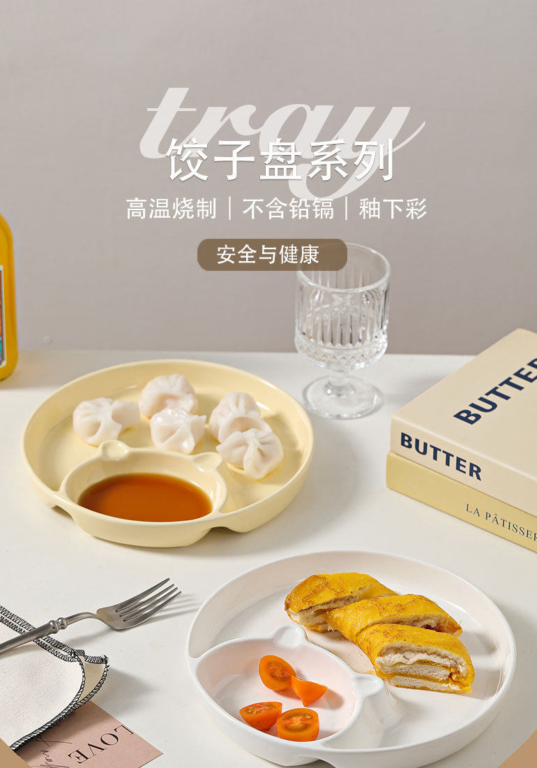 Dumpling Plate with Vinegar Dish, Household Ceramic Dish, Breakfast Divided Plate, High-End Creative Dumpling Special Plate