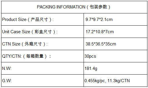 | Overall dimensions | 97*97*21 |